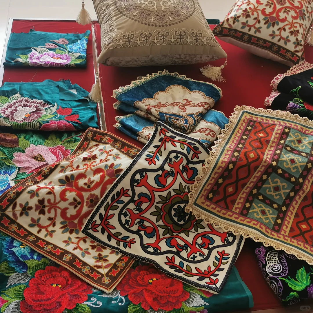 在维吾尔族服饰中,刺绣是最有特色的装饰工艺,维吾尔族人民的衣服、裙子鞋帽以及床上、室内的装饰用品都点缀着维吾尔族妇女的精湛绣品,维吾尔族刺绣既接受了内地的刺绣工艺,又结合了本民族的特点,逐渐形成自己独特的风韵,无论是图纹还是配色,都带有浓郁的民族特色。