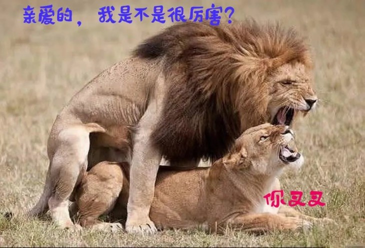 这也不由得让我们产生了一个疑问:和其他自然界的动物相比,人类的啪啪时长到底处在哪个段位呢?几乎所有的鸟类和家禽都是“快枪手”,其中最快的,就是最好吃的鸭子,只有0.3秒。不要试图在公鸭发情的时候观察它交配过程,因为你眨眼睛的功夫,它就完事了……公鸭是一种不讲武德的动物,约66.7%的交配是通过强.奸来完成的。因此,母鸭们基本上都是性冷淡,甚至为了报复这种没有快感的性生活。像长颈鹿这样体型硕大的生物,交配时长也只有短短的1秒。这当然和大草原上潜在威胁太多有关。在交配前,雄性长颈鹿会用舌头和鼻子嗅雌性的尿液,通过尿液的味道就可以知道雌性长颈鹿是否处于排卵期。如果是的话雄性长颈鹿就会抓住机会在1秒钟内解决战斗;如果不是的话,那雄性长颈鹿会一直等待,等待时间长短不一,可能需要一天、几天甚至十几天,反正一直等待雌性长颈鹿进行排卵,然后抓住机会「一击必中」。猩猩在灵长类动物智商排序位列第一,但其交配时长只有15秒左右。它们是除了人类以外,唯一会面对面doi, 并接吻的动物。海豚不仅智商高,也是一种好奇心极强的生物,这可能也造就了它们见到谁就想跟人家发生点儿什么的原因吧。所幸海豚也知道时长不够,频率来凑。它们一天可以啪啪数次,而且雄性海豚会硬性强迫雌性海豚来交配,除此以外,它们还会寻找其他动物或者坚硬的物体来满足自己~身为草原之王,狮子平日里威风凛凛,但是真到了交配时却可以说是威风尽失。