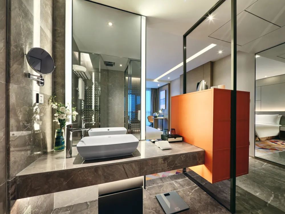 进入酒店大堂就能感受到工业风与怀旧元素结合,时尚简约之感汇于一隅。就像参观了一个现代美术展,时尚前瞻的现代化设计风格融合当地文化精髓,年轻大胆、富有力度的色彩搭配,为人们提供优雅舒服的休憩之所。