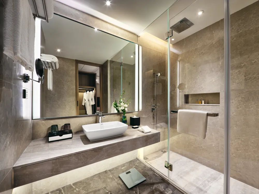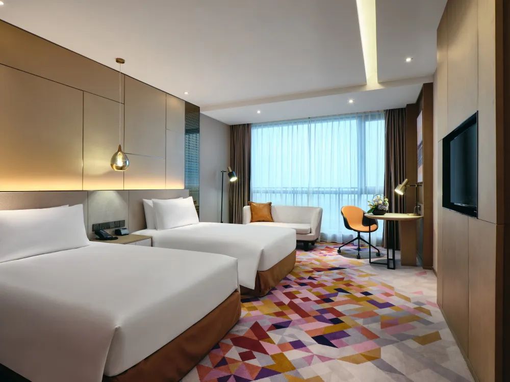本次套餐入住的房间是35㎡起跳的高级房,房间色调时尚明亮,浅色纹理地毯与暖色墙面营造分割的创意空间,还采用环保的全息材质,让你的入住体验惬意舒适,尽享舒缓酣眠。