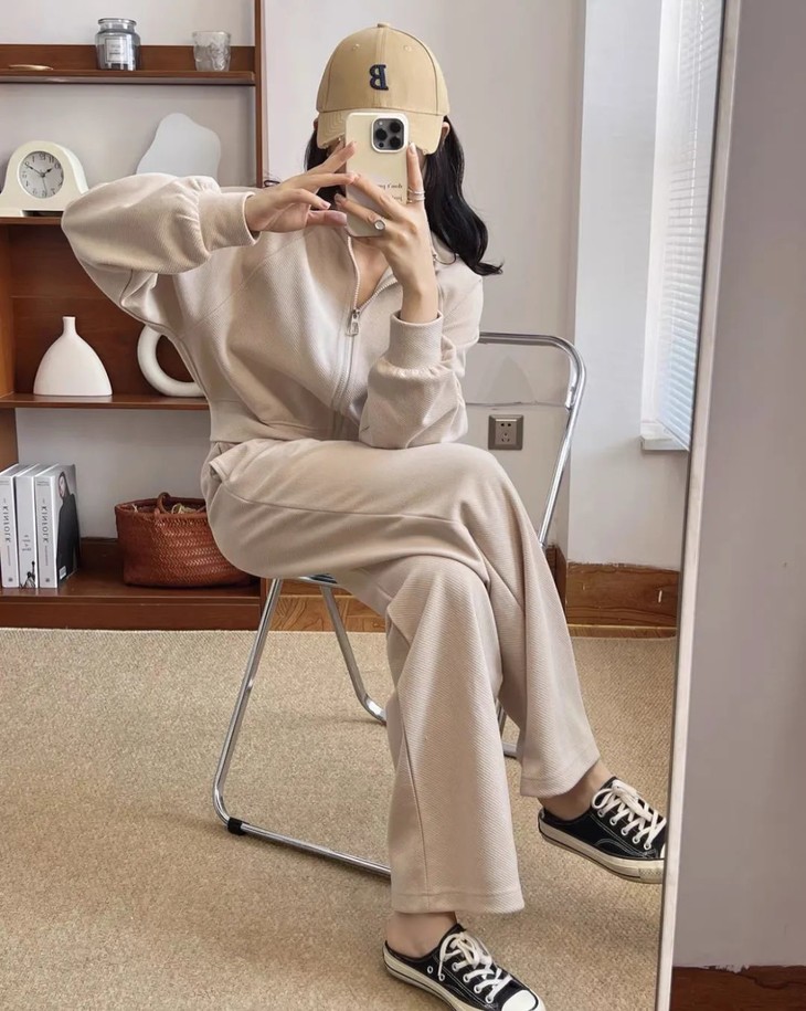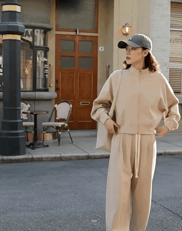 短款拉链卫衣+直筒卫裤,跳脱呆板的传统设计