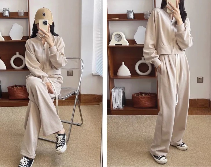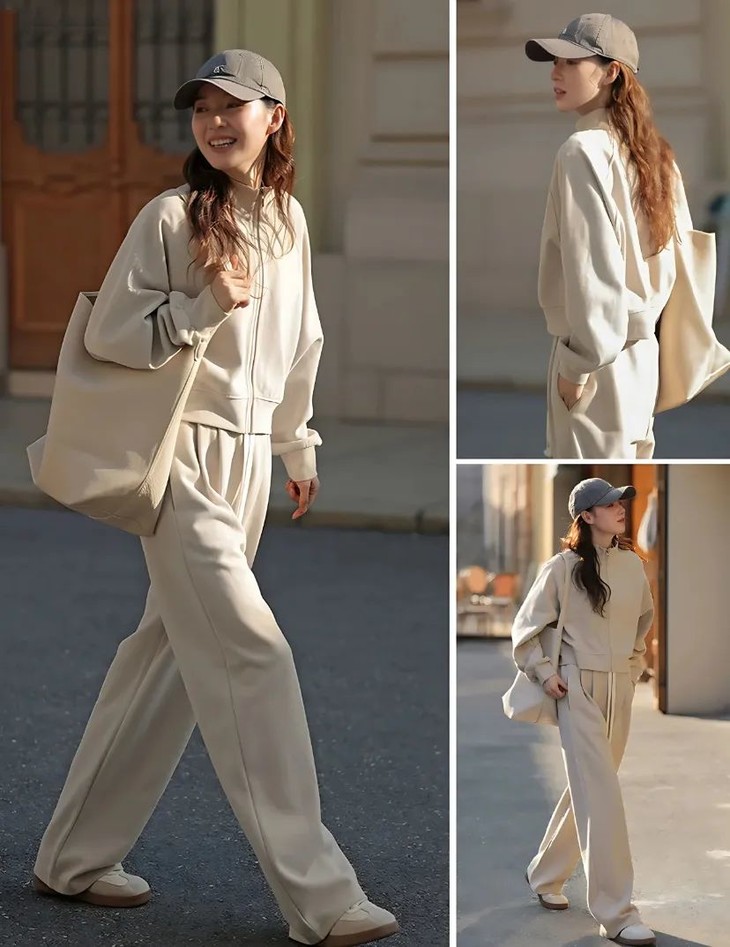 且在运动的风潮加持下,卫衣套装无疑成为穿搭首选