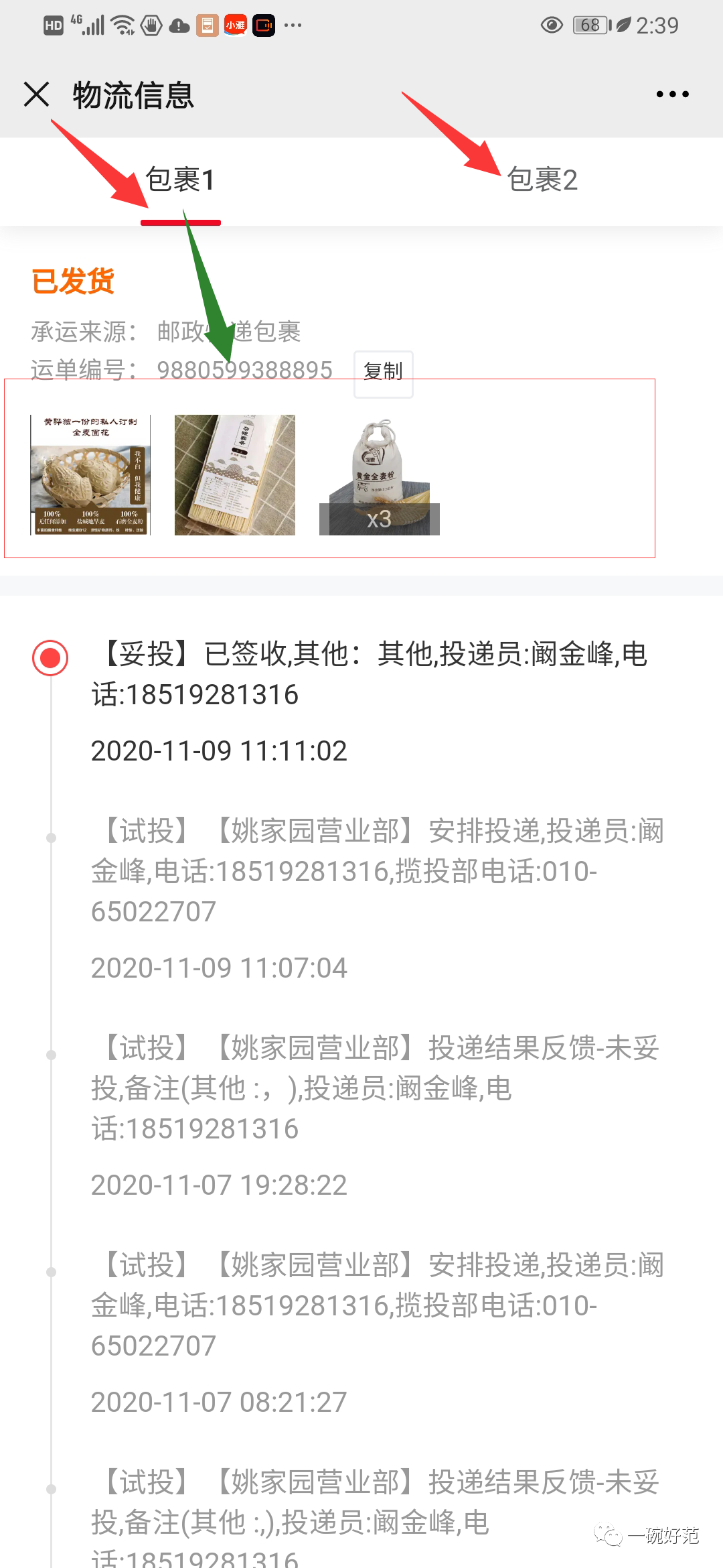 点击进入全部订单,找到你所需要查看的订单,然后点击右下角“查看物流”进入查看“包裹1,包裹2”