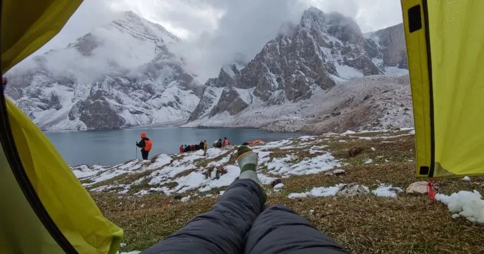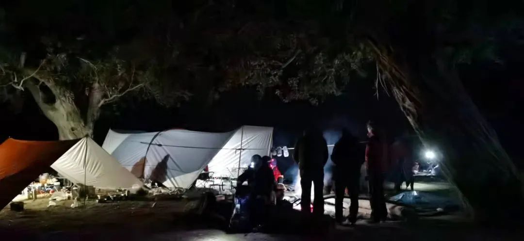 最后到的姐姐失温,押队小伙伴帮忙将姐的帐篷扎在厨房天幕边后来厨房帮忙,大家这才发现押队状态也不太对,赶紧将他赶回去休息。