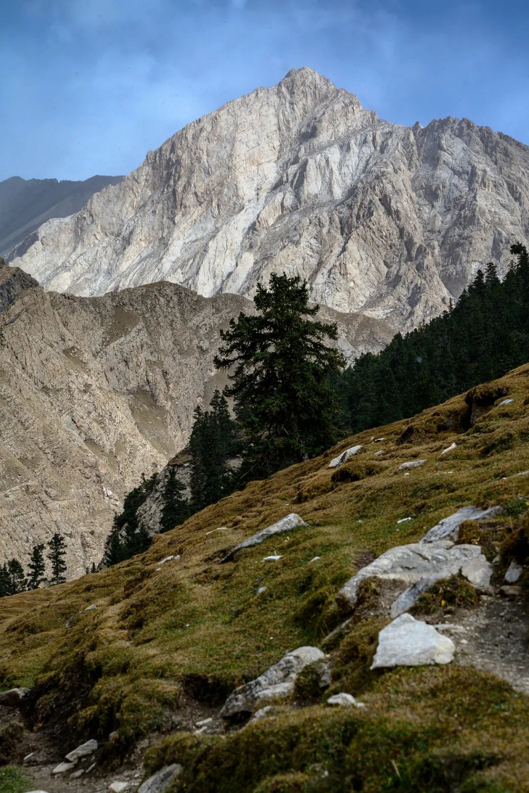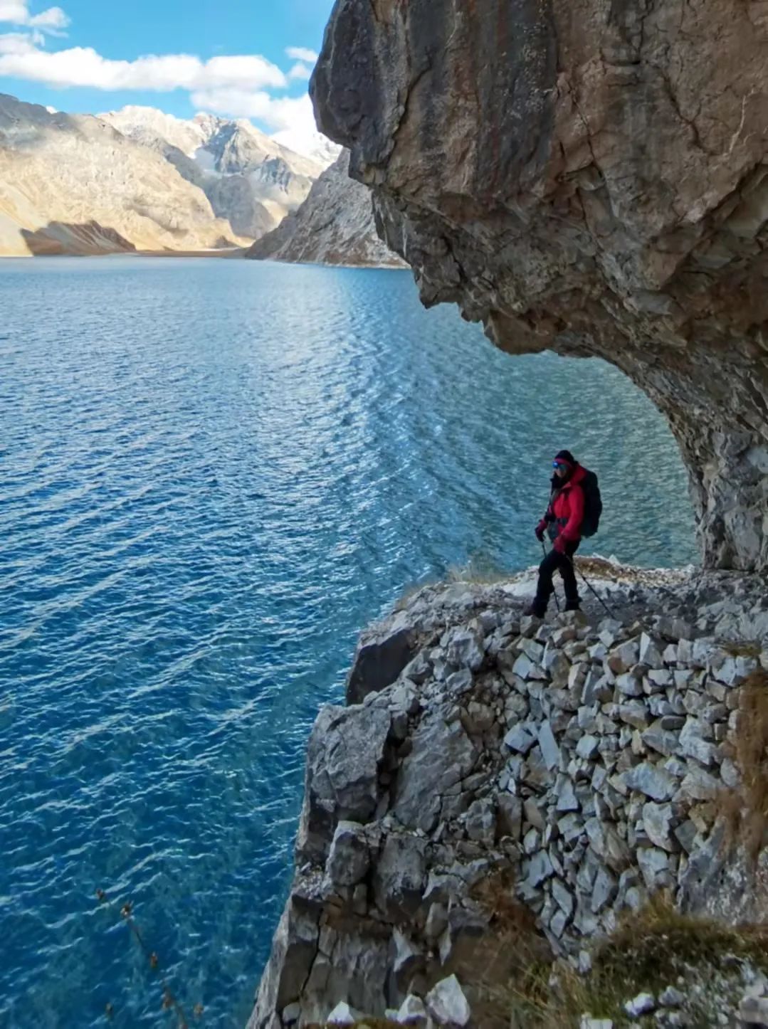 此后一路下坡到天堂湖边,再沿着湖边绕半圈走个3公里左右到对岸便是营地了。这段并不费体力,但陡坡碎石不宜行走,稍不留神可能有滑坠风险。