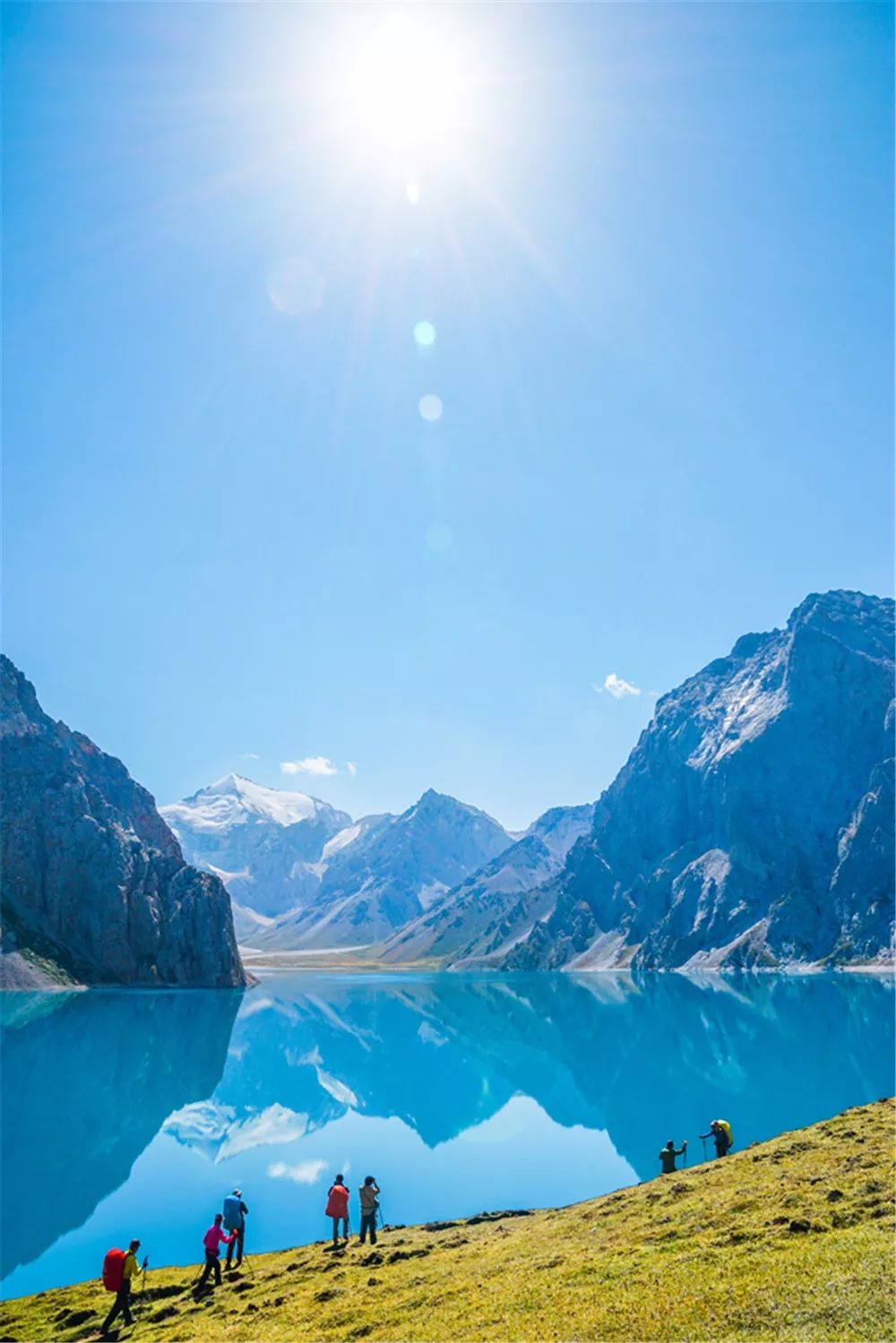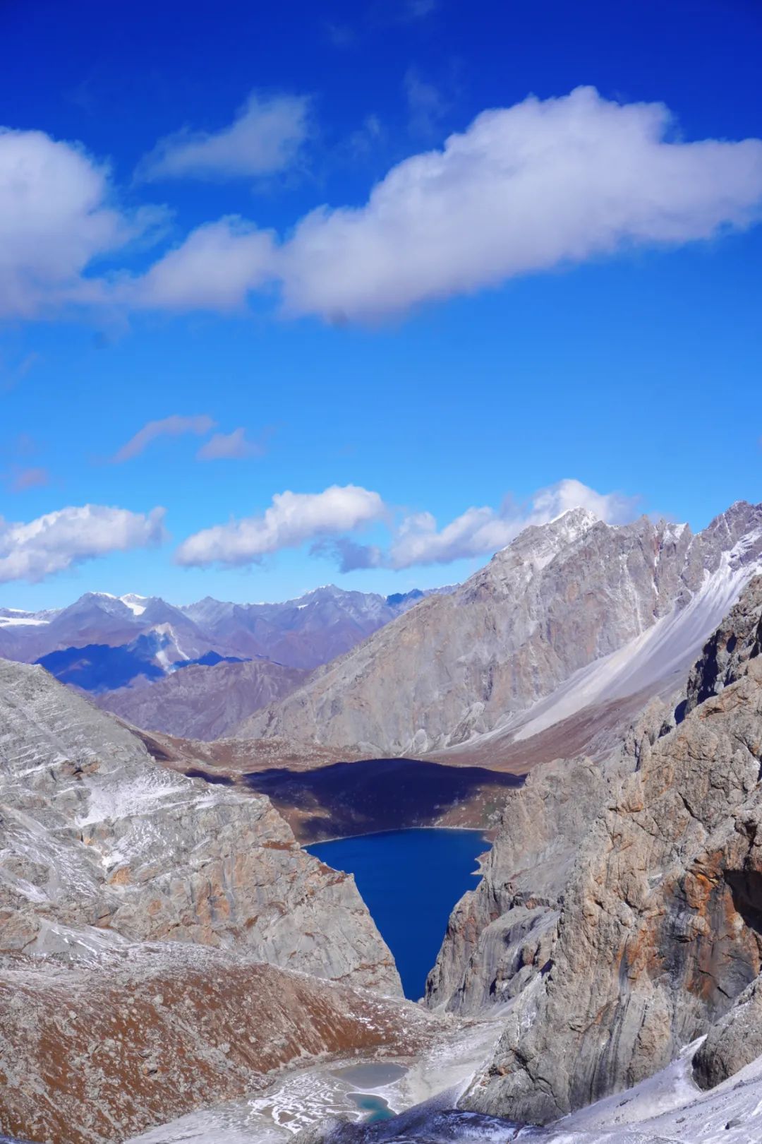 天堂湖第一眼像极了他念他翁的揉错,都是藏于群山深处,一个转弯便蓦然出现在眼前,在蔚蓝天空下闪着耀眼的宝蓝色水光,成为苍茫群山中让人心动不已的点缀。
