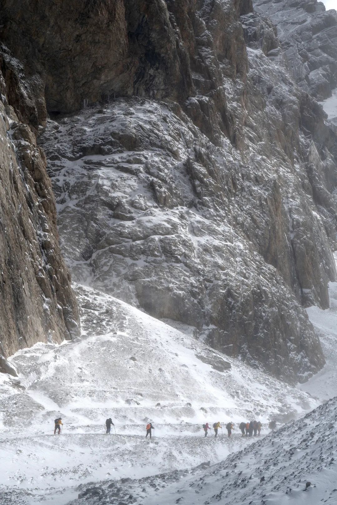 感冒愈发严重,一路涕泗横流,擤鼻涕到鼻底皴裂,加之生理期的不适,和自天堂胡营地开始的持续脚痛,爬着爬着,顶着打脸的雪粒子突然很生气,并瞬时产生了严重的自我怀疑——这都是什么人间疾苦?!
