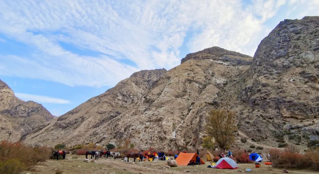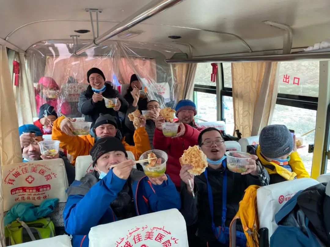 那是中午12点,最后一天七点多起床急行军,所有队员在拔营3个多小时后终于安全顺利出山,并在出山口的政府大巴上车喝着羊汤、啃着热馕。