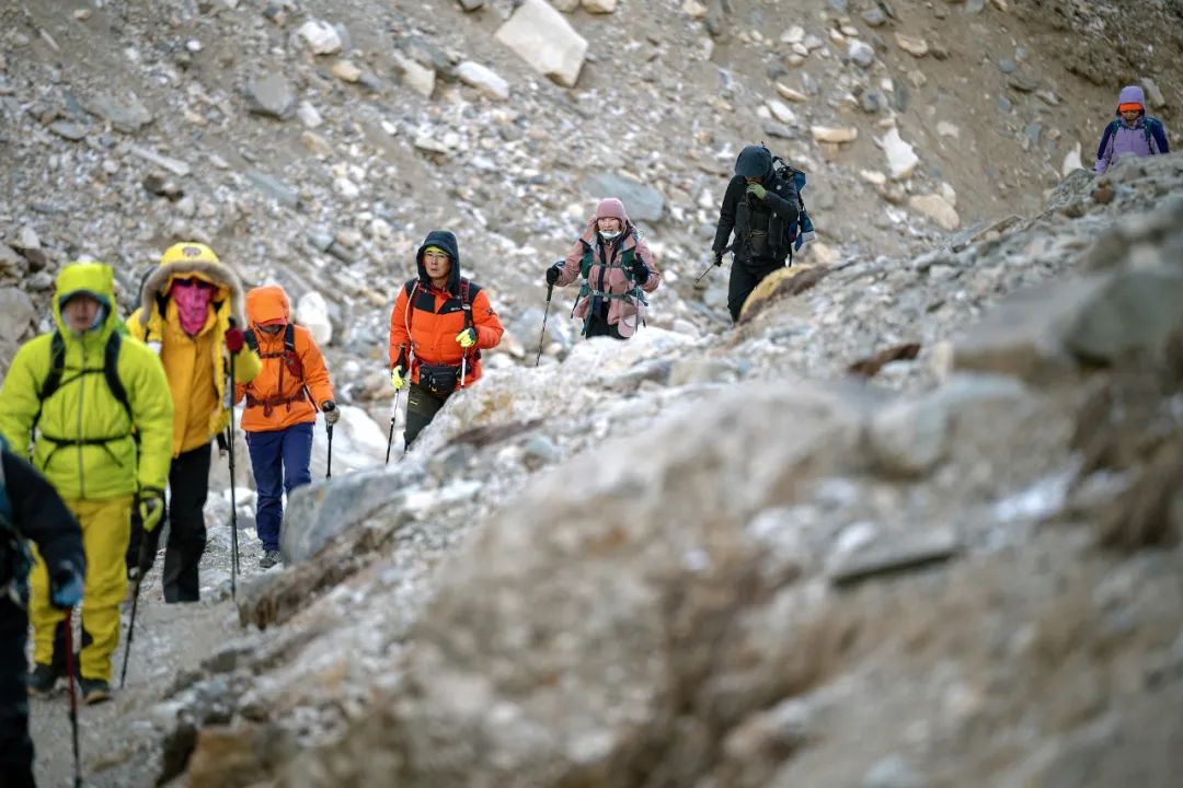 人群外的我和白狼却一直焦灼不安。多方打探,终于联系上一位其他队伍当晚出山的徒步者。卫星电话联系不便,每一个等待间隙,都异常漫长。