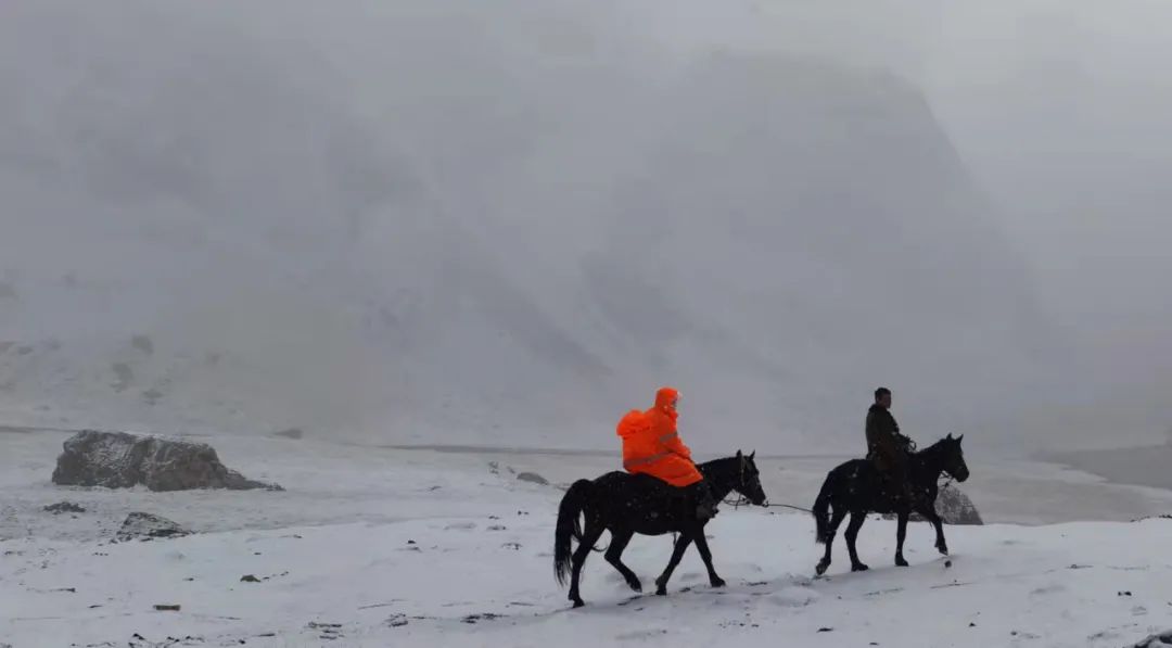 次日休整时的阴沉天气虽然不利于拍照,却是种别样体验,此时见人雪中骑马,也顿觉古意。如此也算是阴晴风雪看遍。
