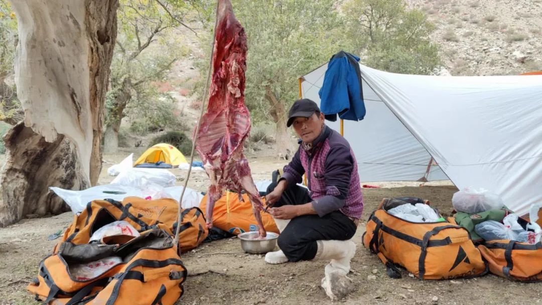 胖达炖肉、百夫长煮水,土匪协调,三位领队忙着照看着大家的晚餐,热乎乎的炖羊肉和篝火边,队员们都很满足。