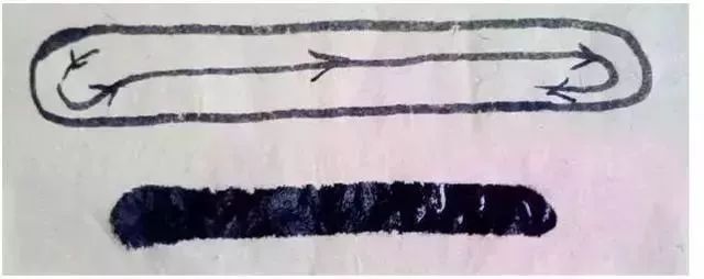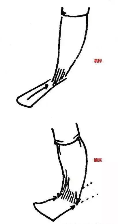 此种方法把笔锋痕迹裹藏在里面,使笔画有含蓄、饱满感,同时也为落笔后的行笔铺毫作好准备。
