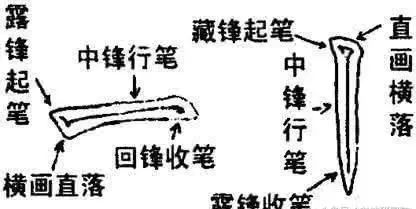 因此,前人说“藏锋以包其气,露锋以纵其神”。但初学者切勿乱用出锋,因多用了出锋,就会显得抛筋露骨,单薄枯弱。