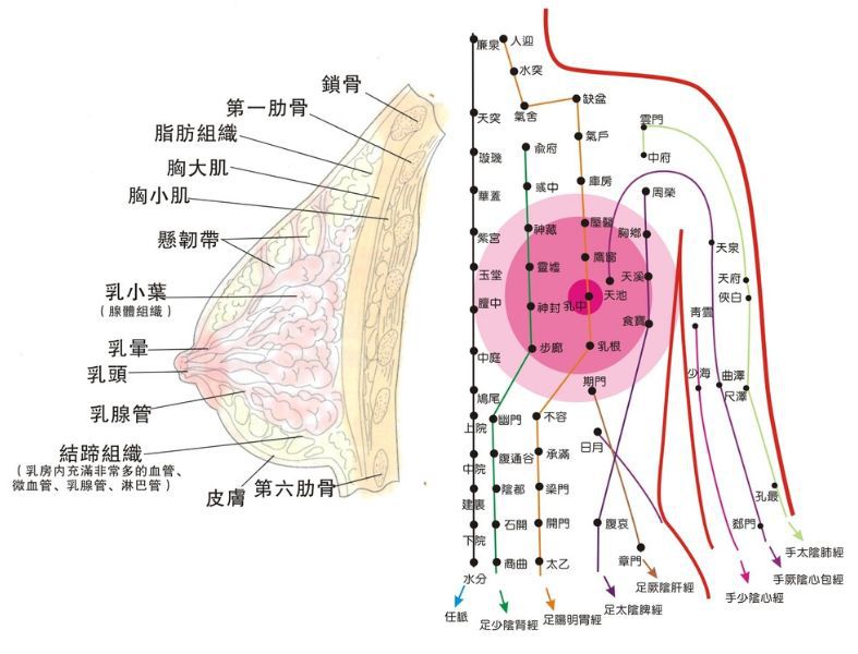 艾灸乳根、期门、屋翳,具有疏肝和胃,疏通乳房气血的作用;