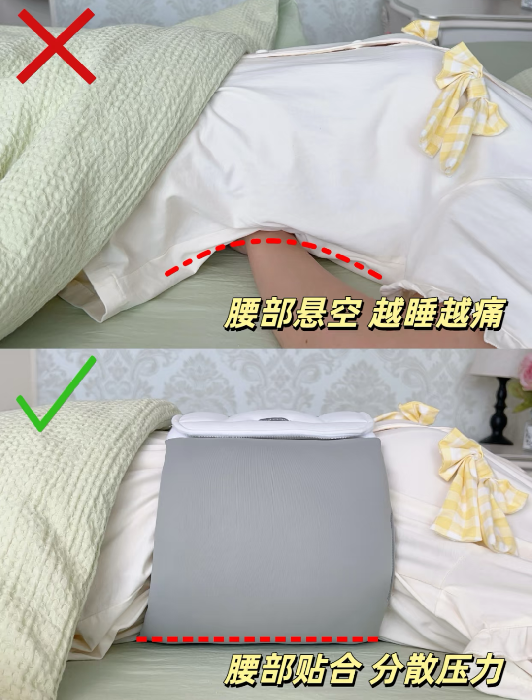 市面上护腰枕要么软塌塌像棉花,睡醒腰更酸;要么硬邦邦像木板,硌得腰上青一块红一块,花钱买罪受。