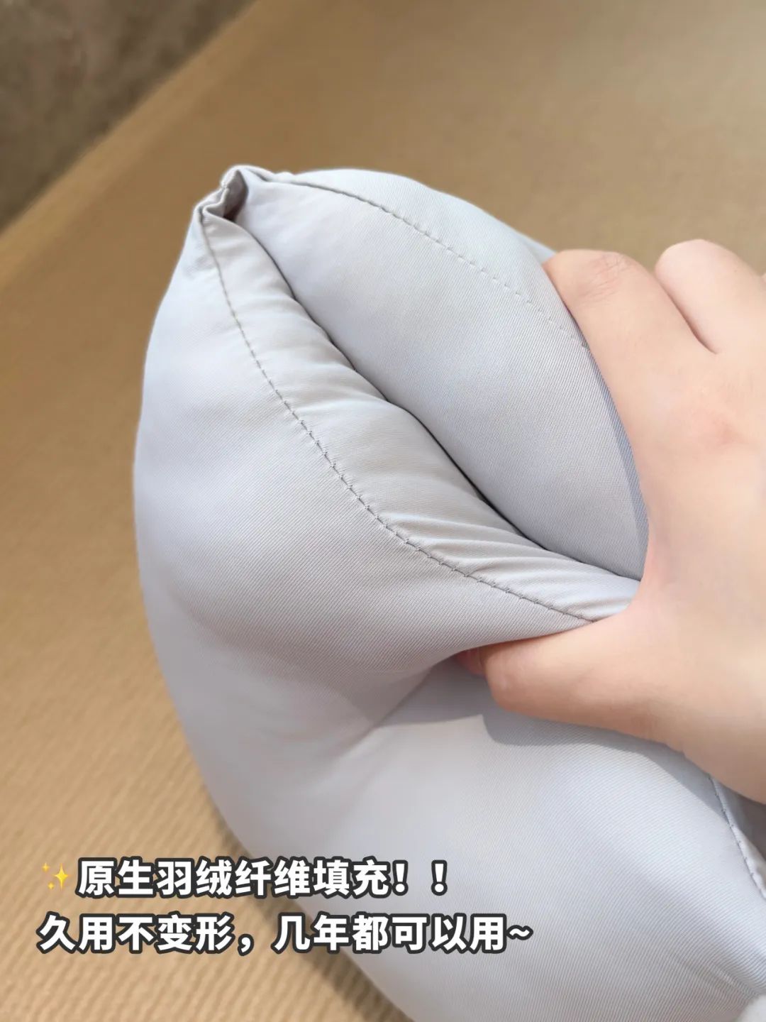 面料是冰.肌裸感面料,丝滑透气,夏天也不闷。内里填充羽绒棉,回弹性超棒,用了一段时间,完全没有塌陷变形