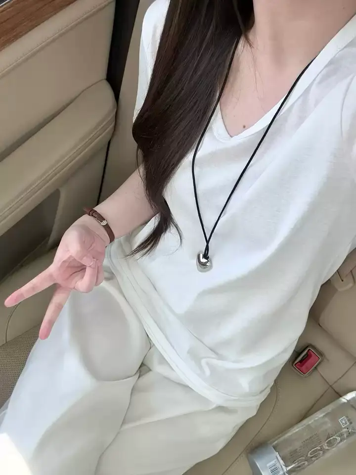 38℃穿也不闷汗,V 领还刚好露半片锁骨,显脸小一圈谁懂啊😍