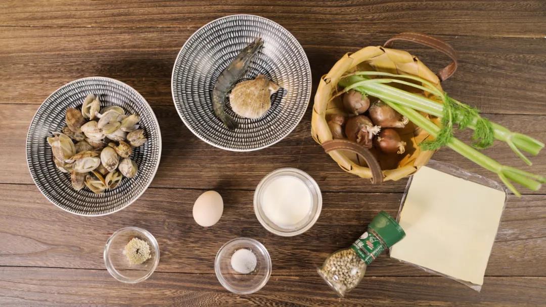 葱头 3个 / 西芹 20g / 蛤蜊 150g