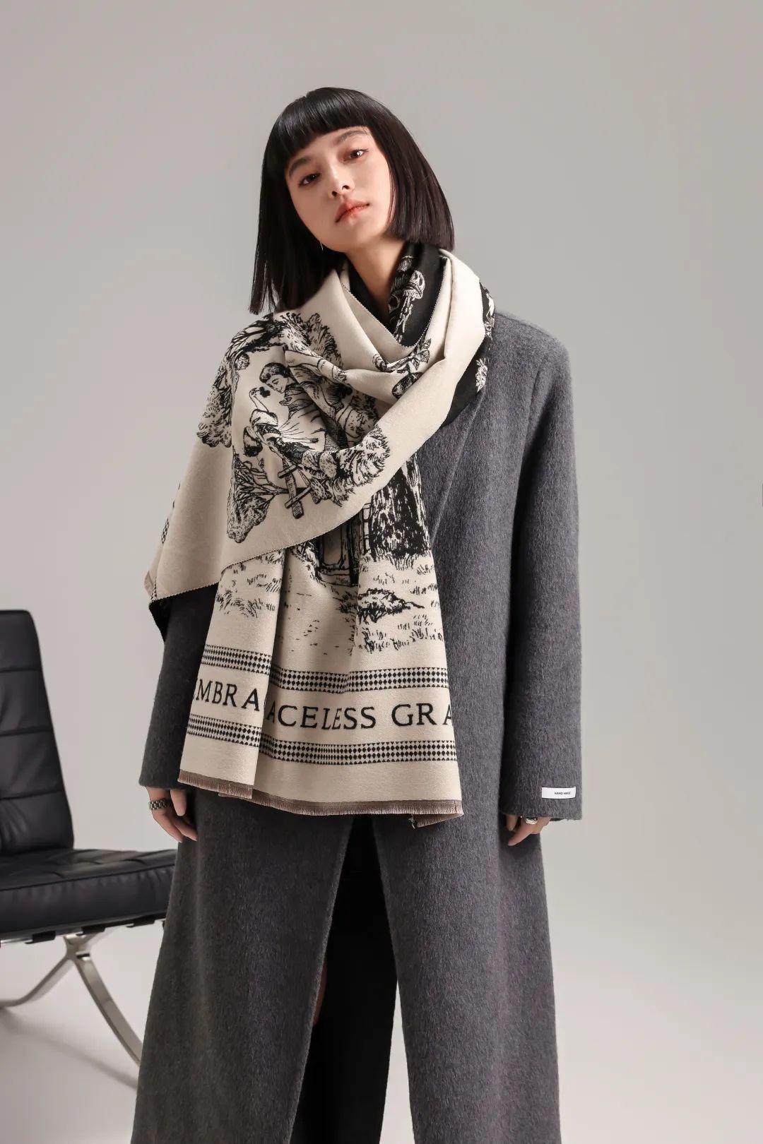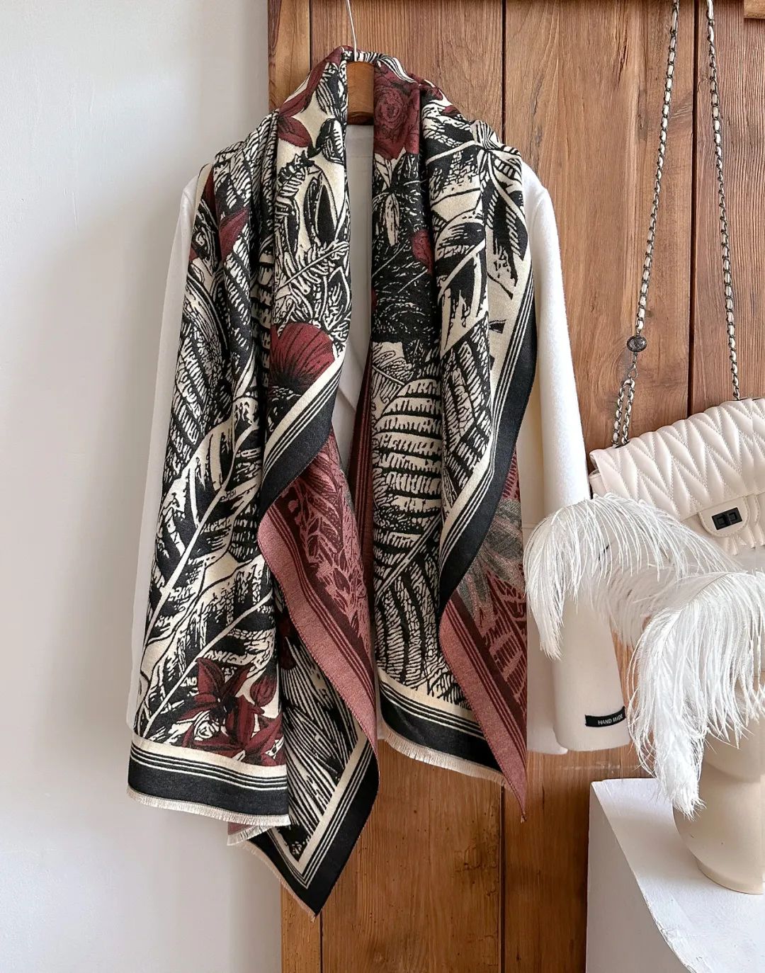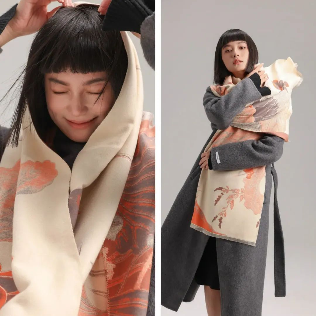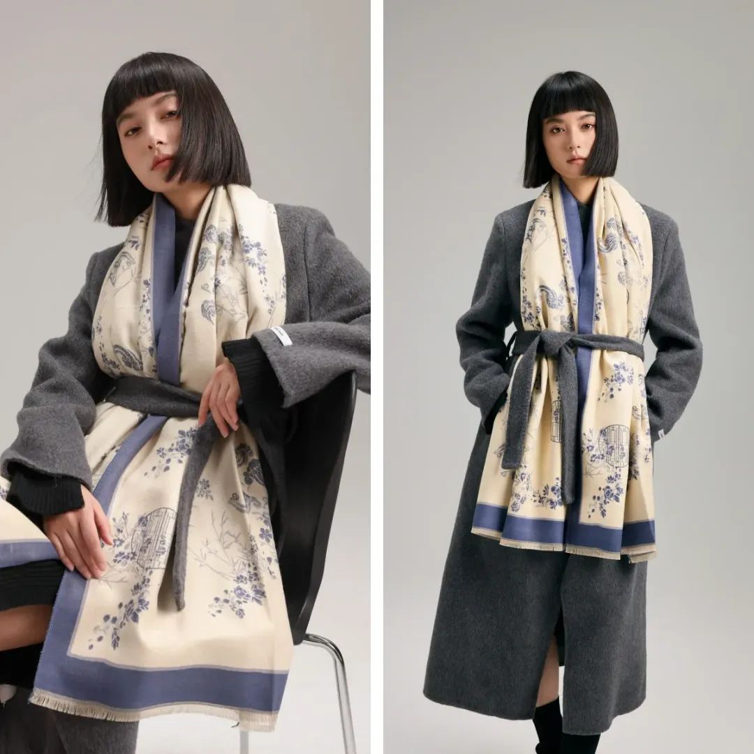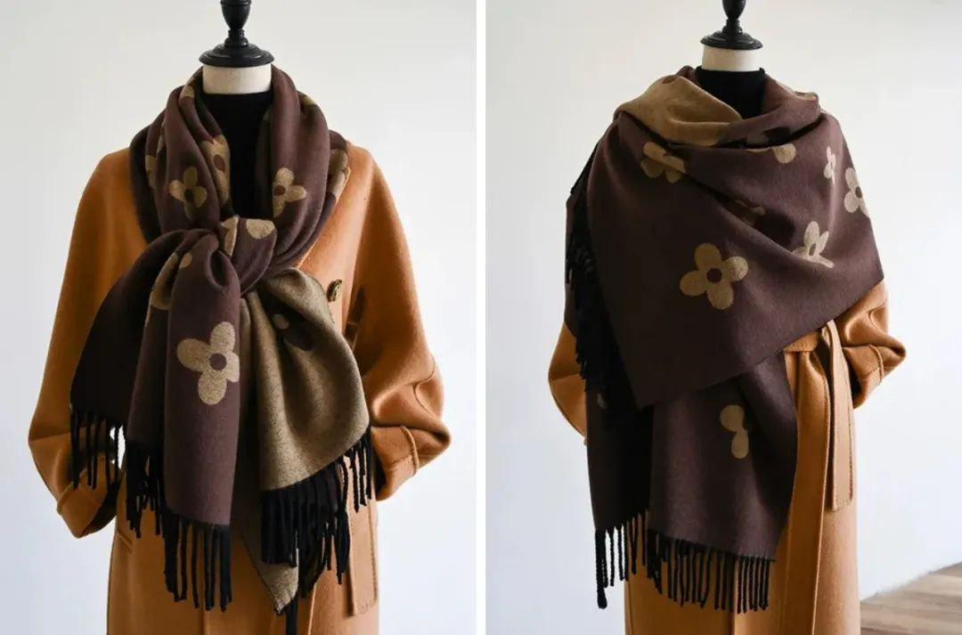 这款围巾不仅适配大衣,还可以搭冬季的旗袍。