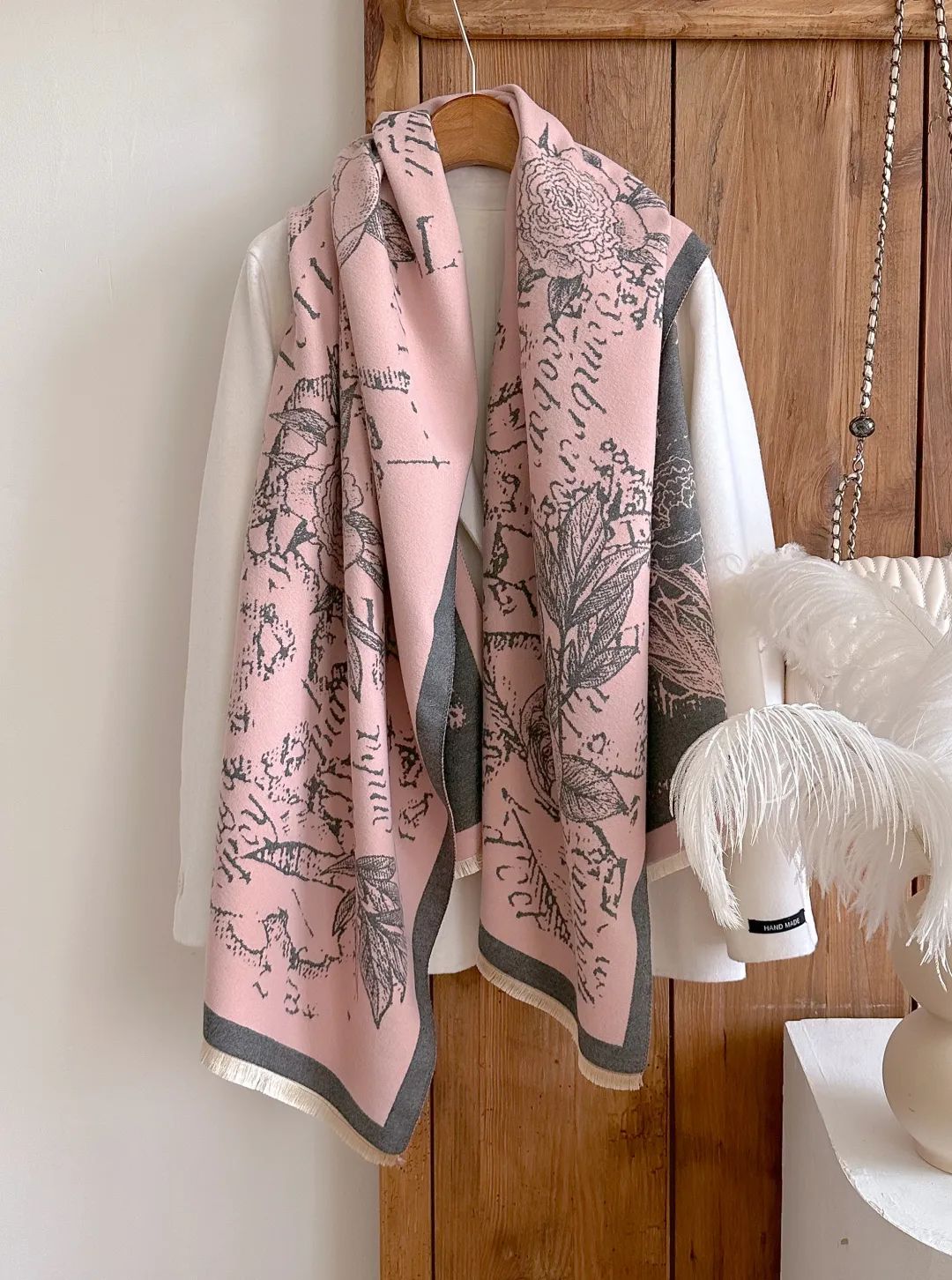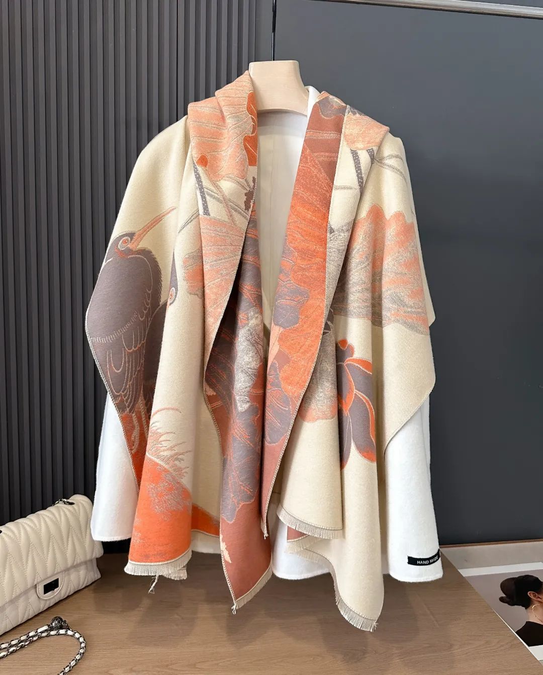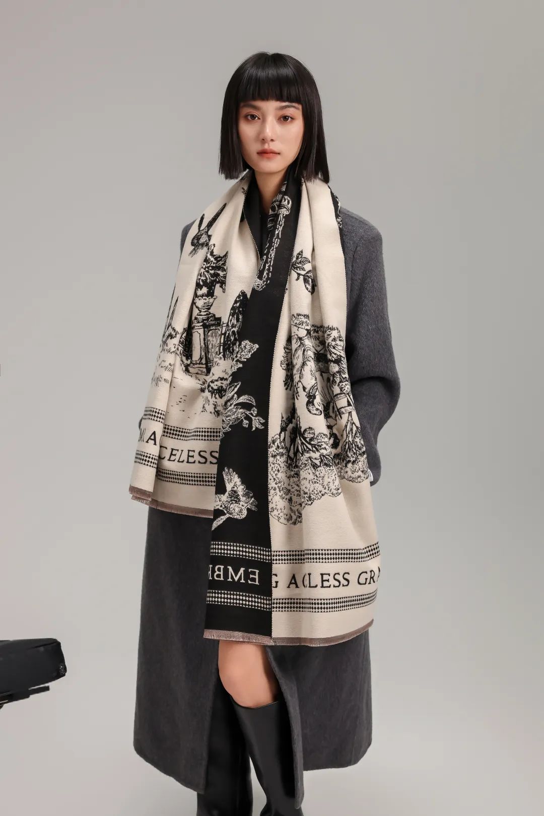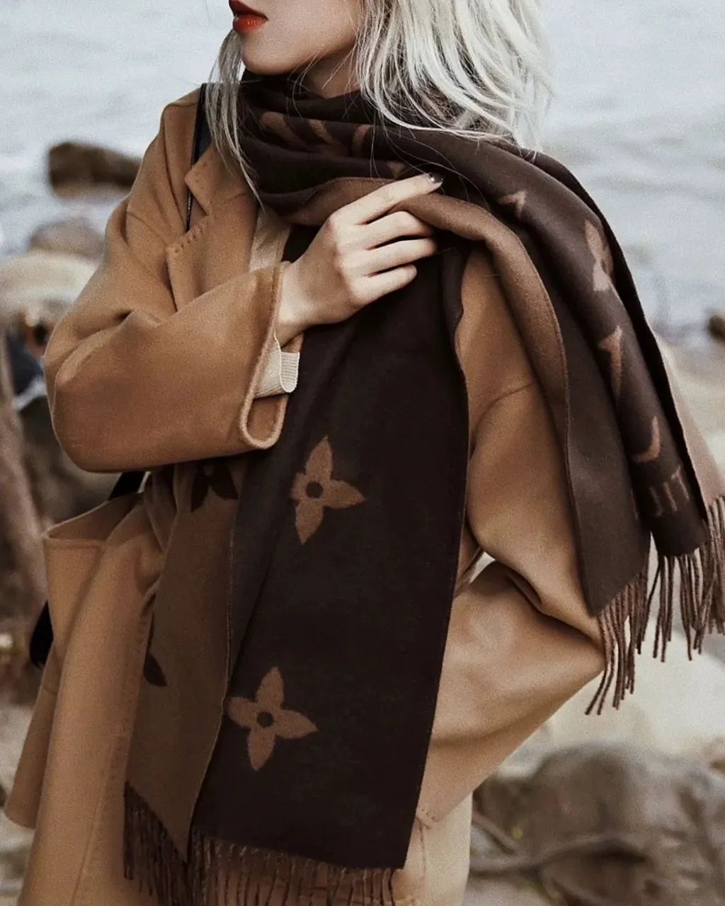 这款围巾不仅适配大衣,还可以搭冬季的旗袍。