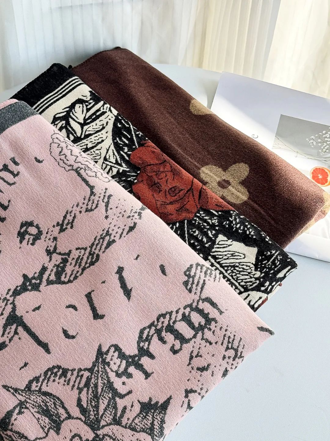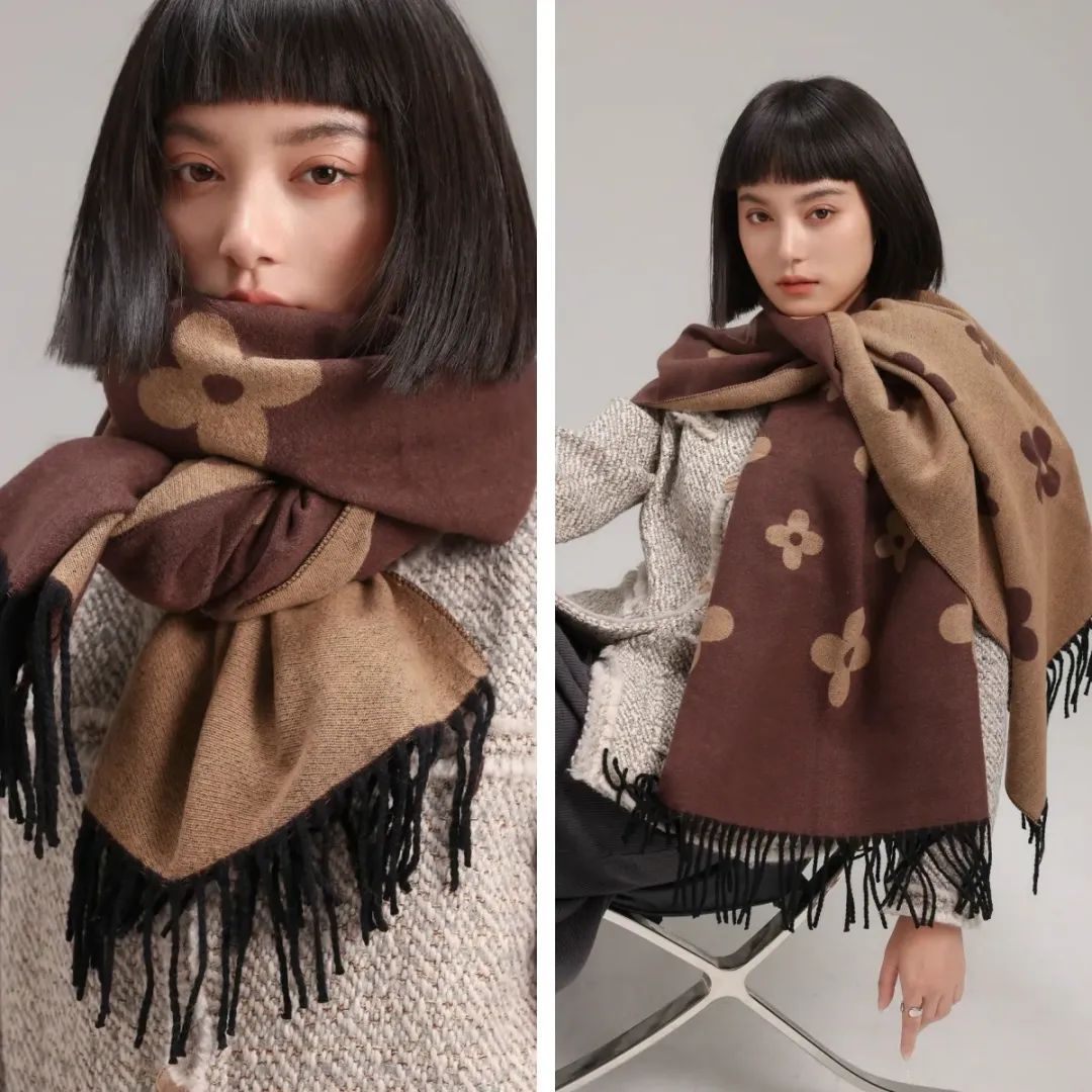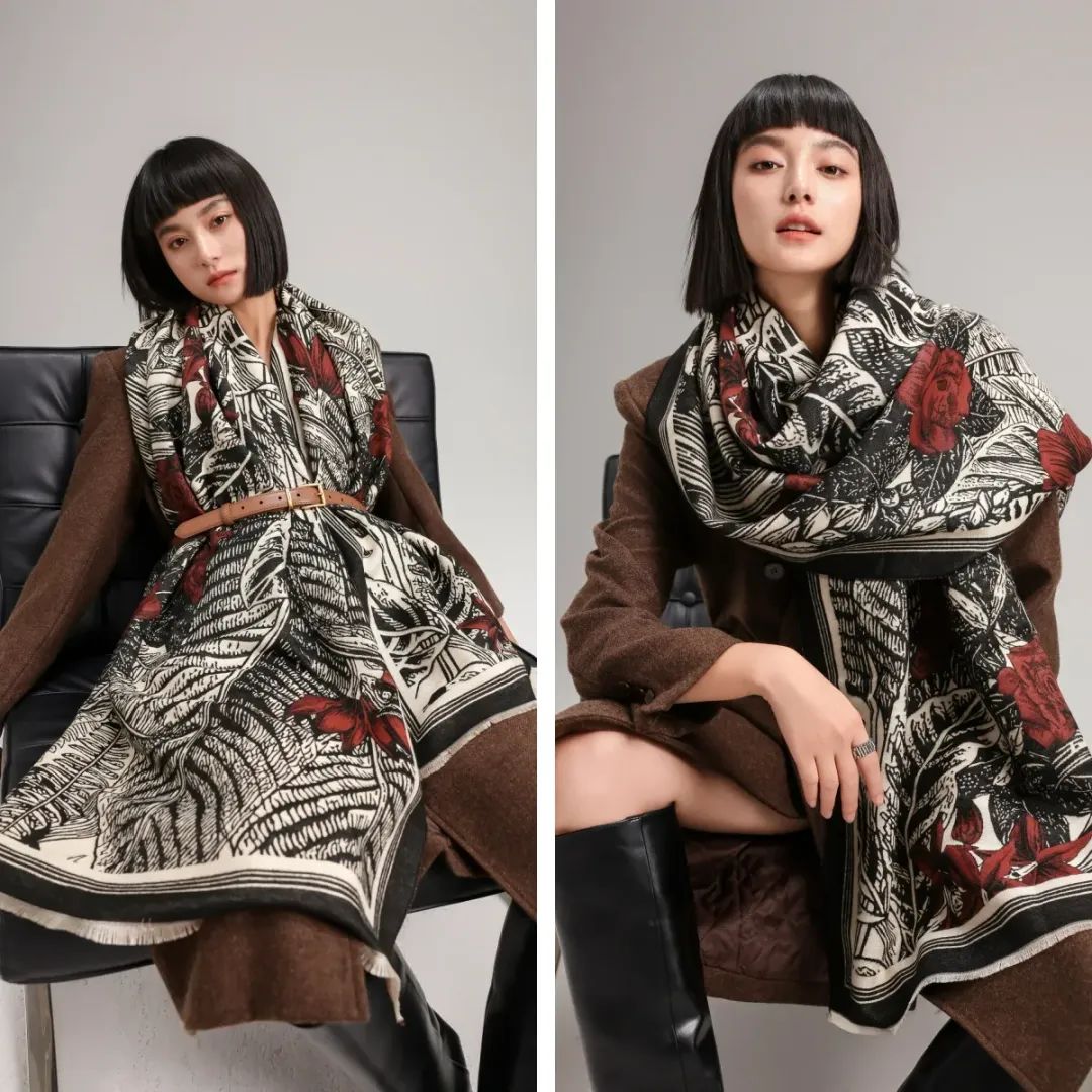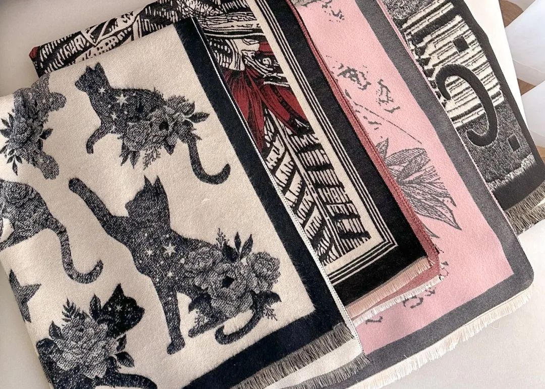 围巾精选优质面料,32支纱线,以及市面上少有的重工三打提花工艺,细节不输大牌。