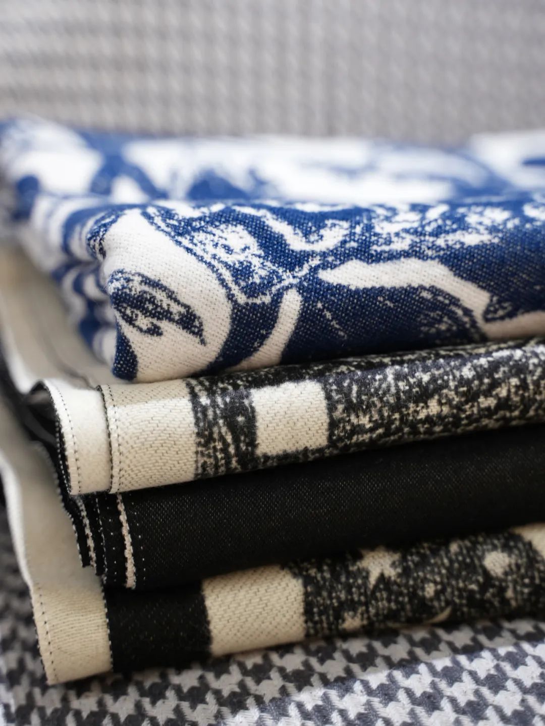 这种工艺不仅考究而且非常复杂,选用市场少有的 3 种以上色彩纱线精梳密织,打造色彩鲜艳又高级的立体纹理质感。