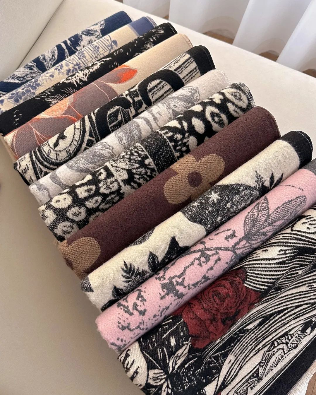 今年的新款围巾真的花色超多,足足11款,而且每一款都是原创设计。