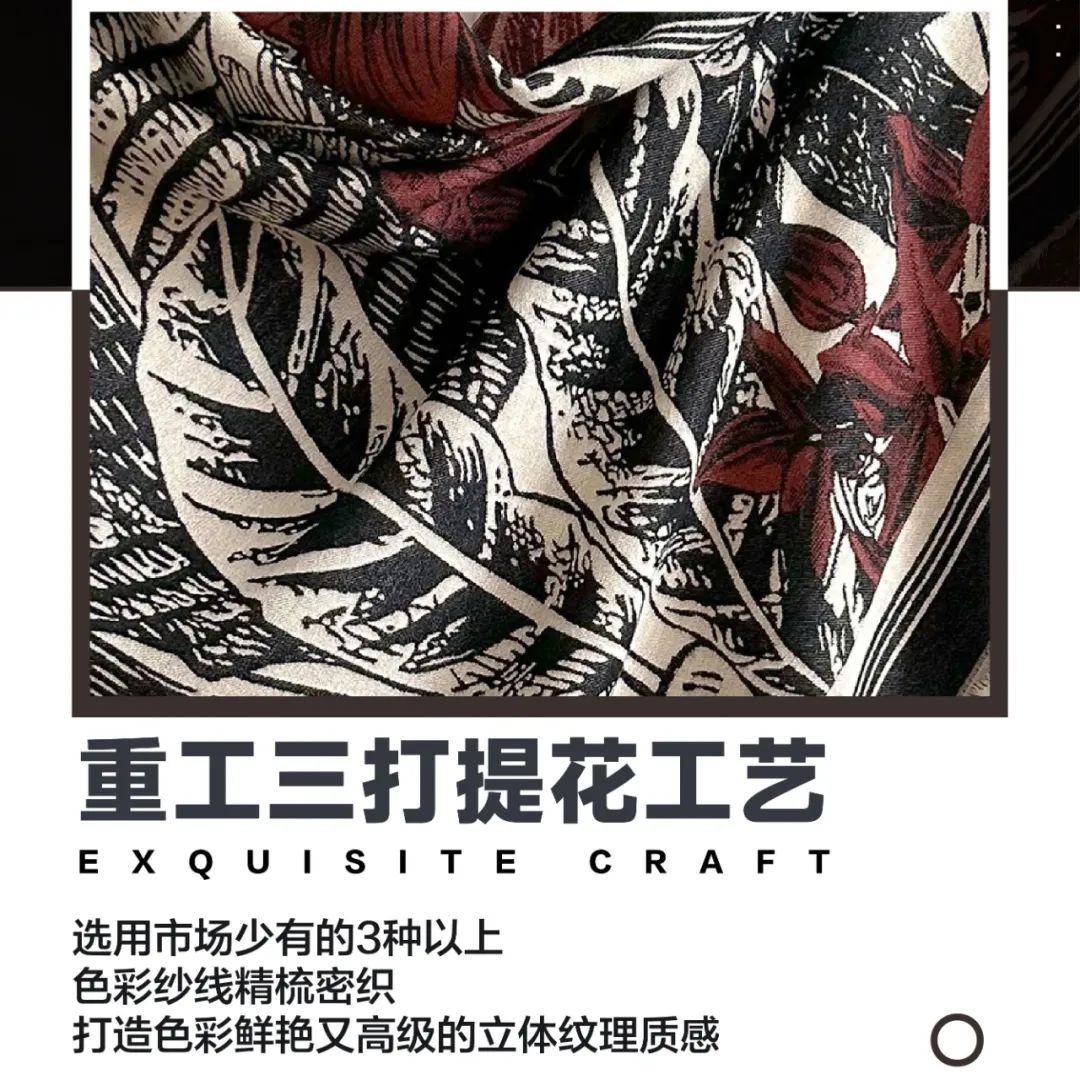 蕞后这个系列重工三打提花,色彩鲜艳,立体的纹理工艺诠释国风、油画风各种风格。