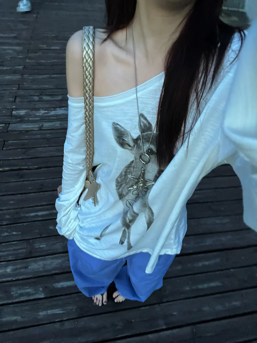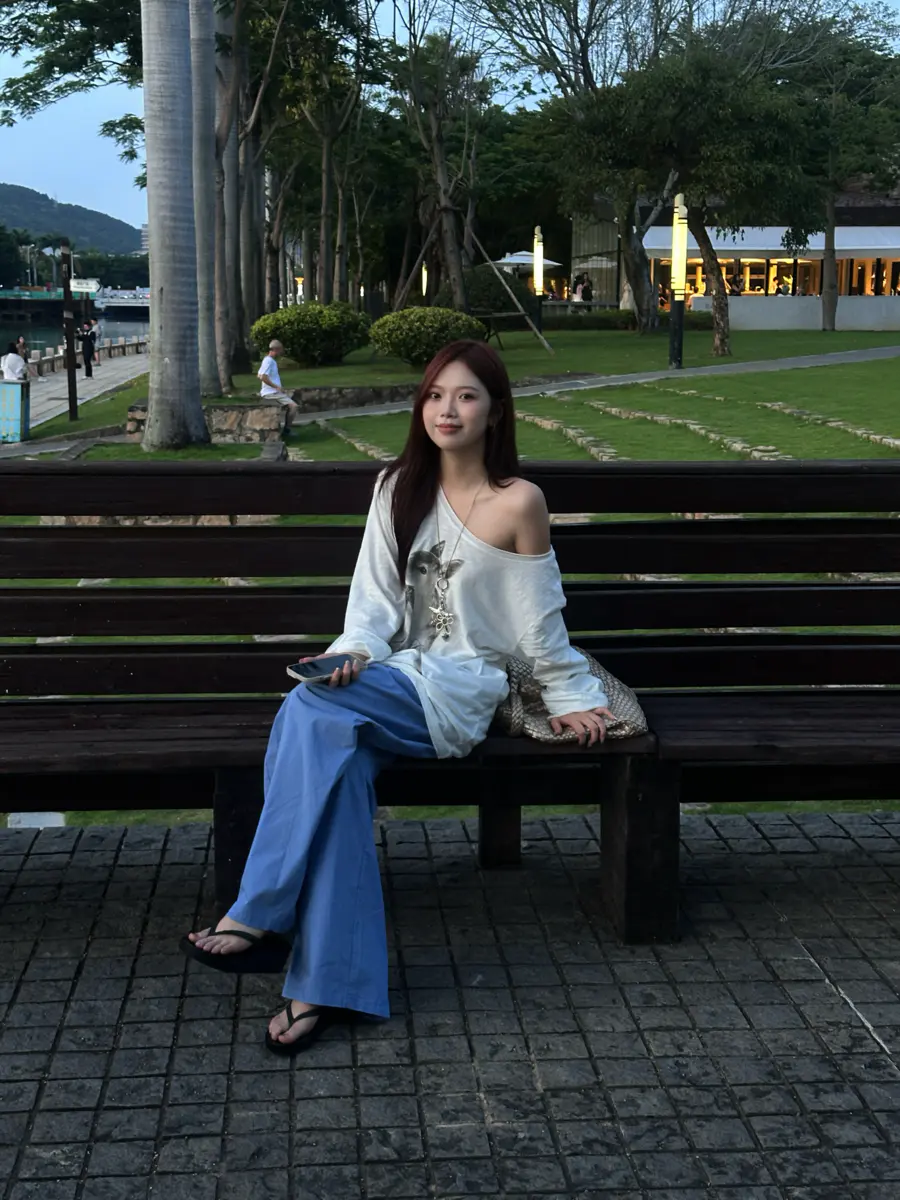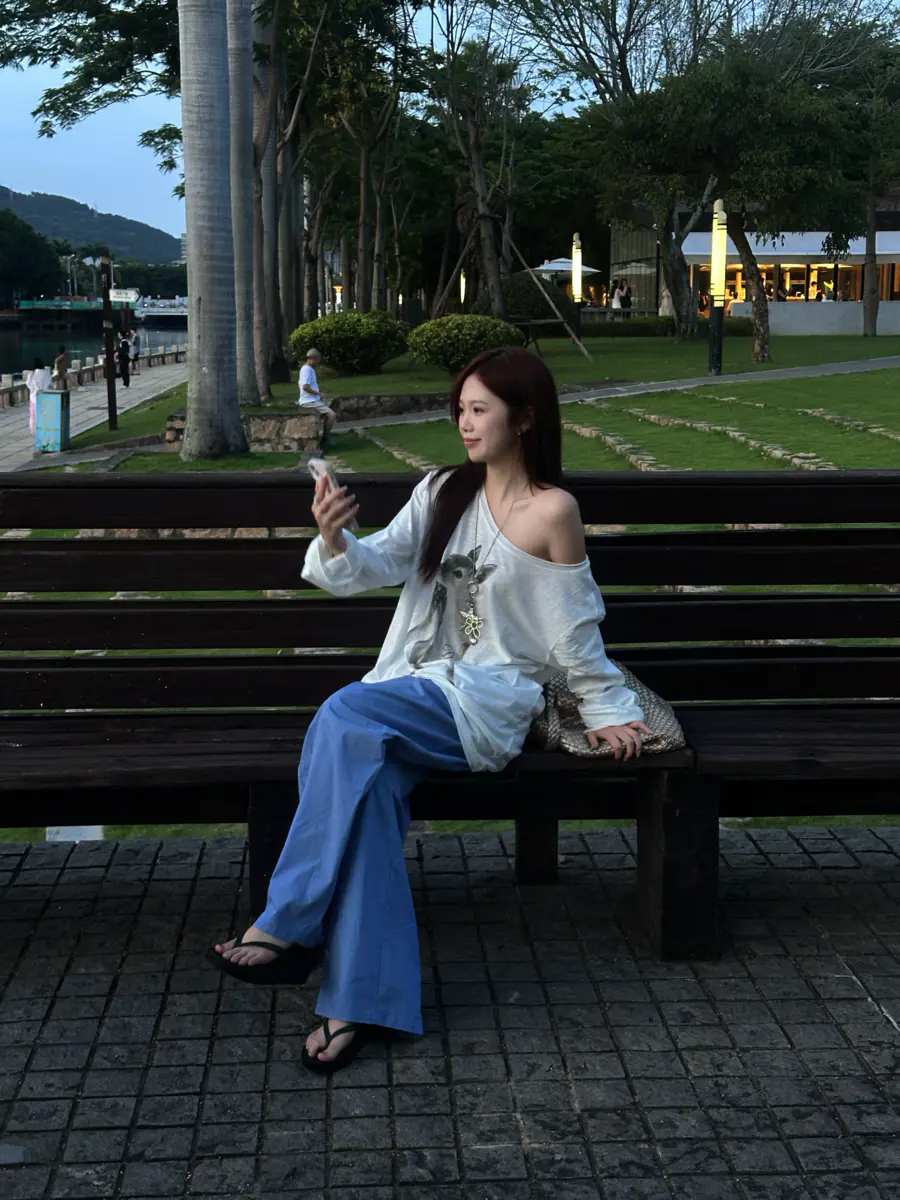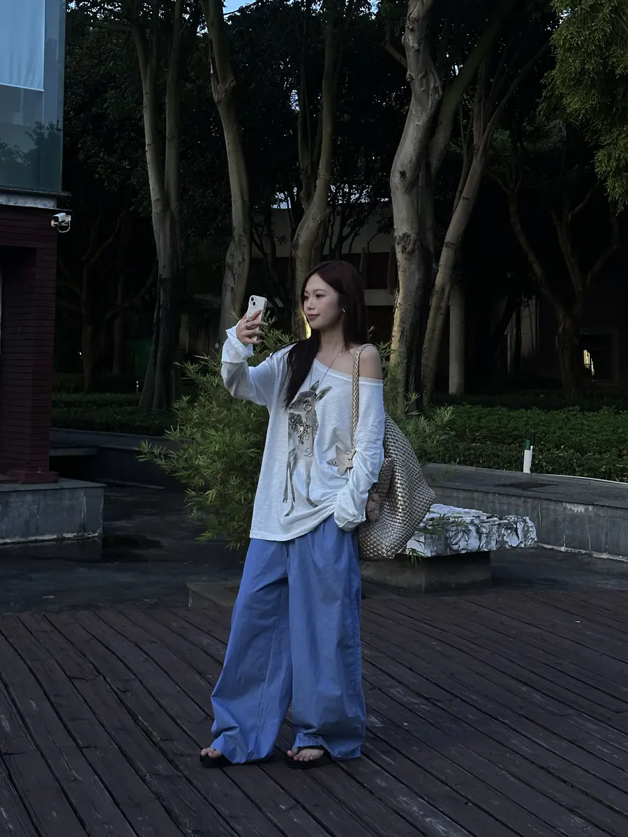 新品上身 | 白印花长袖配法工蓝,盐系少年感
