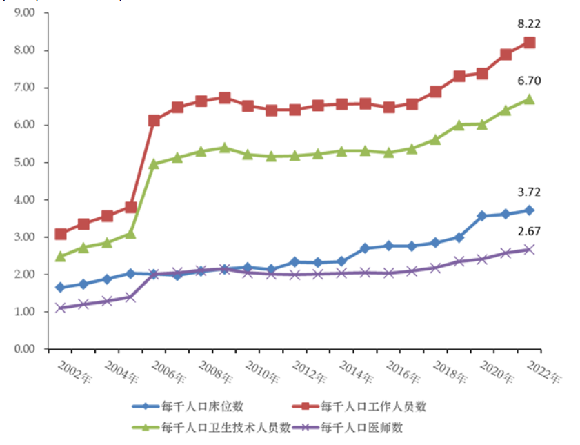 深圳儿科市场供需对比深圳市统计局最新公布的数据显示,2022年末全市常驻人口有1766.18万人,按照每千人口拥有量计算,2022年末全市每千人口床位数3.72张,每千人口卫生工作人员8.22人,每千人口卫技人员6.70人,每千人口执业(助理)医生2.67人,每千人口注册护士2.92人,每千人口医师数量2.67人,均低于全国水平。
