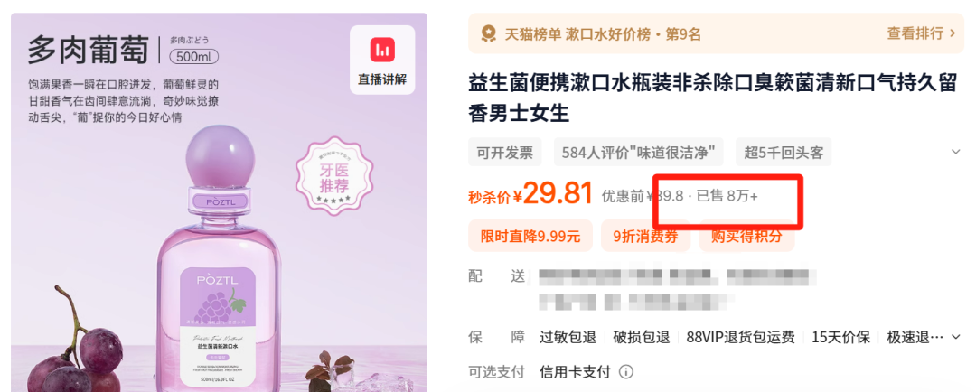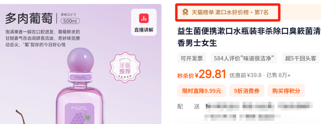 甚至还是天猫榜单 漱口水好价榜的第七名!