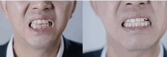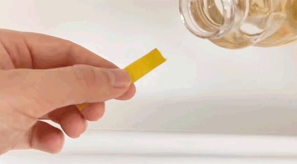 显然被漱口水浸泡过的“牙齿”颜色分分钟被溶解掉。