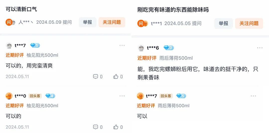 而且评论区都说,可以去口气/没酒精不刺激口腔/温和不辣嘴。
