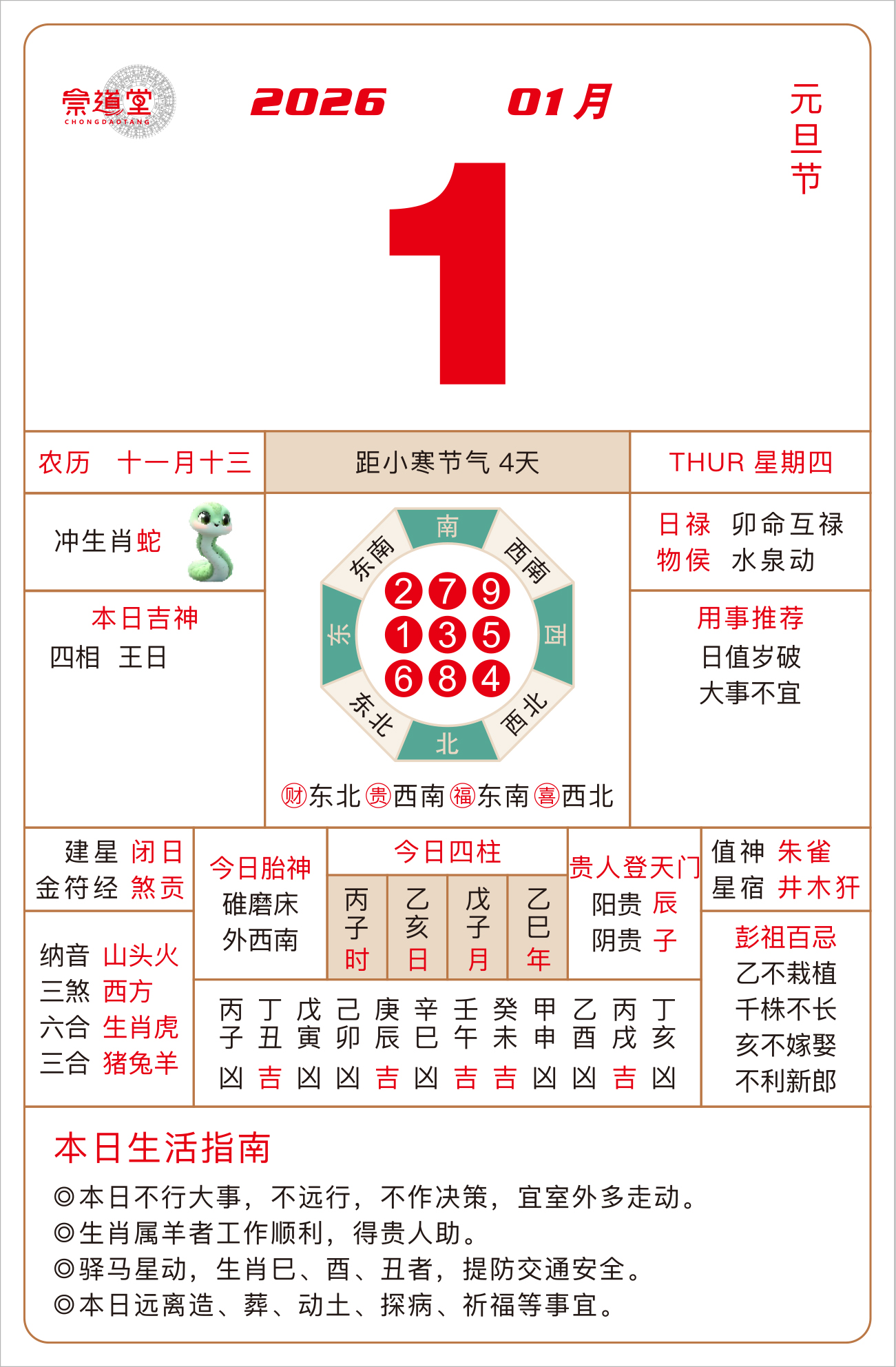 2026年1月5日 农历十一月十七 己卯日 冲鸡