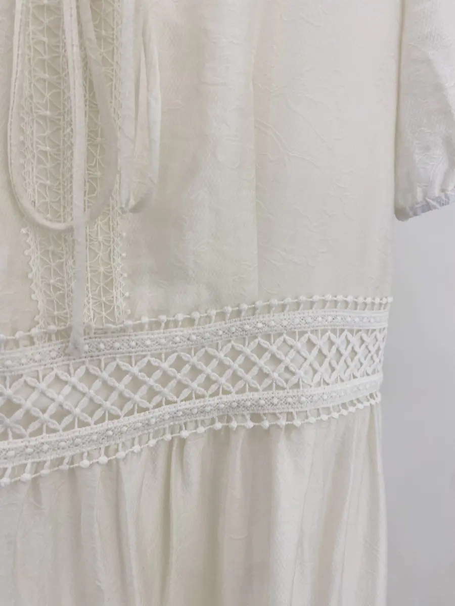 这件是超精致的减龄娃娃裙,面料虽然是纯白的,但实际是有肌理提花的,超级美丽~
