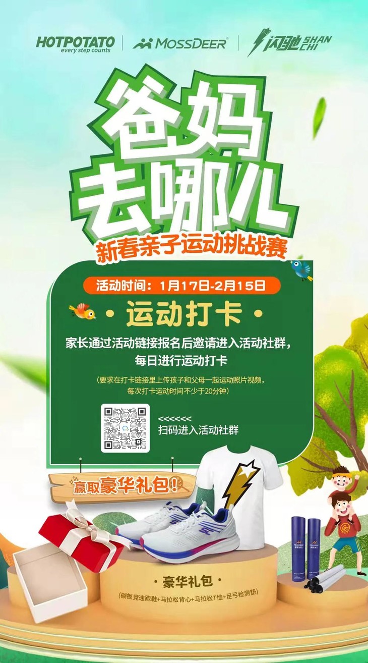 闪驰联手摩闪推出亲子运动线上挑战赛活动。