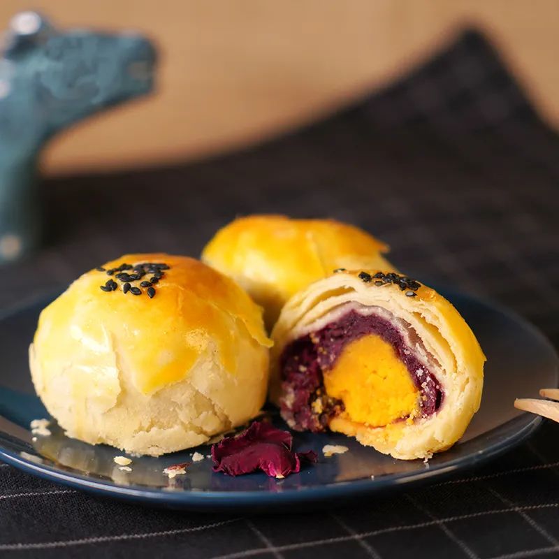 烘烤后散发出的香味,真是让人无法拒绝。松软的蛋黄酥作为早餐,元气满满;配上水果当做下午茶也是相当不错哦~
