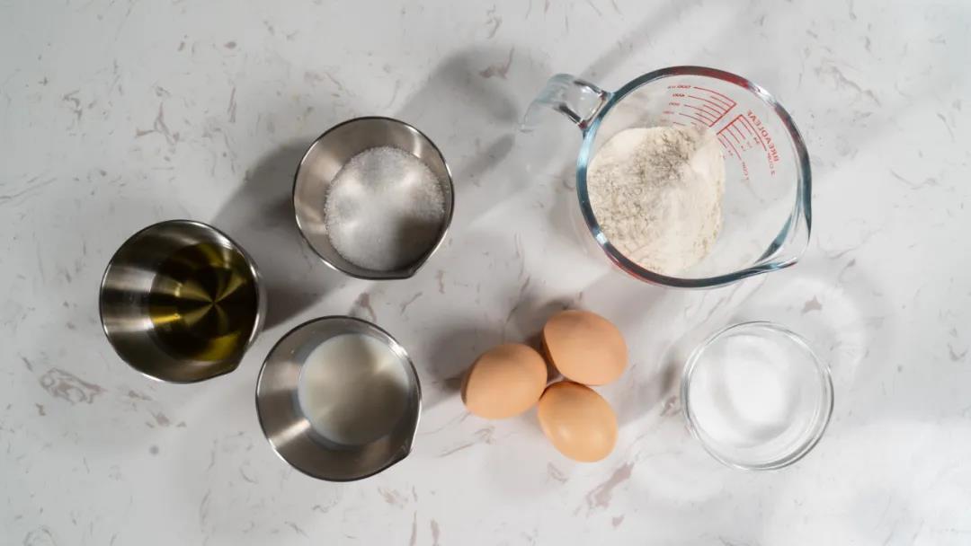 牛奶 28g / 植物油 28g / 低筋面粉 65g