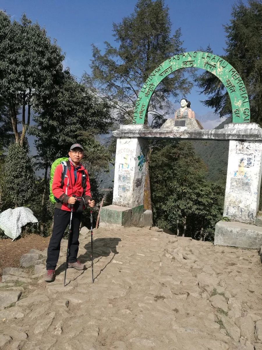 EBC徒步起点,拱门上的塑像是纪念第一位登上珠穆朗玛峰的夏尔巴妇女。