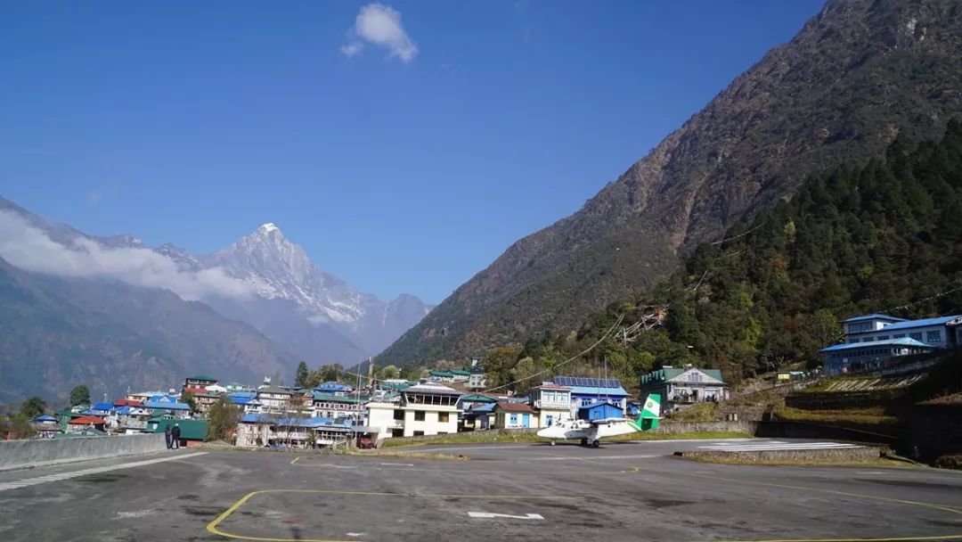 我们的运气很好,前些天因天气不好,卢卡拉机场一直关闭,“徒步中国”也不断的提示我们要做好改乘直升机的准备,但今天天气非常好,上午9:20顺利降落卢卡拉机场,体会了一把“降落如撞山”的感觉,其实这种说法有夸张之嫌,机长嚼着口香糖像玩儿似的把飞机稳稳的停在跑道上,等回去的时候再体会一下“起飞如跳崖”是啥感觉。