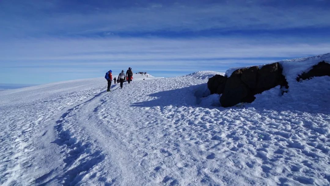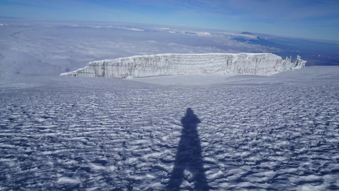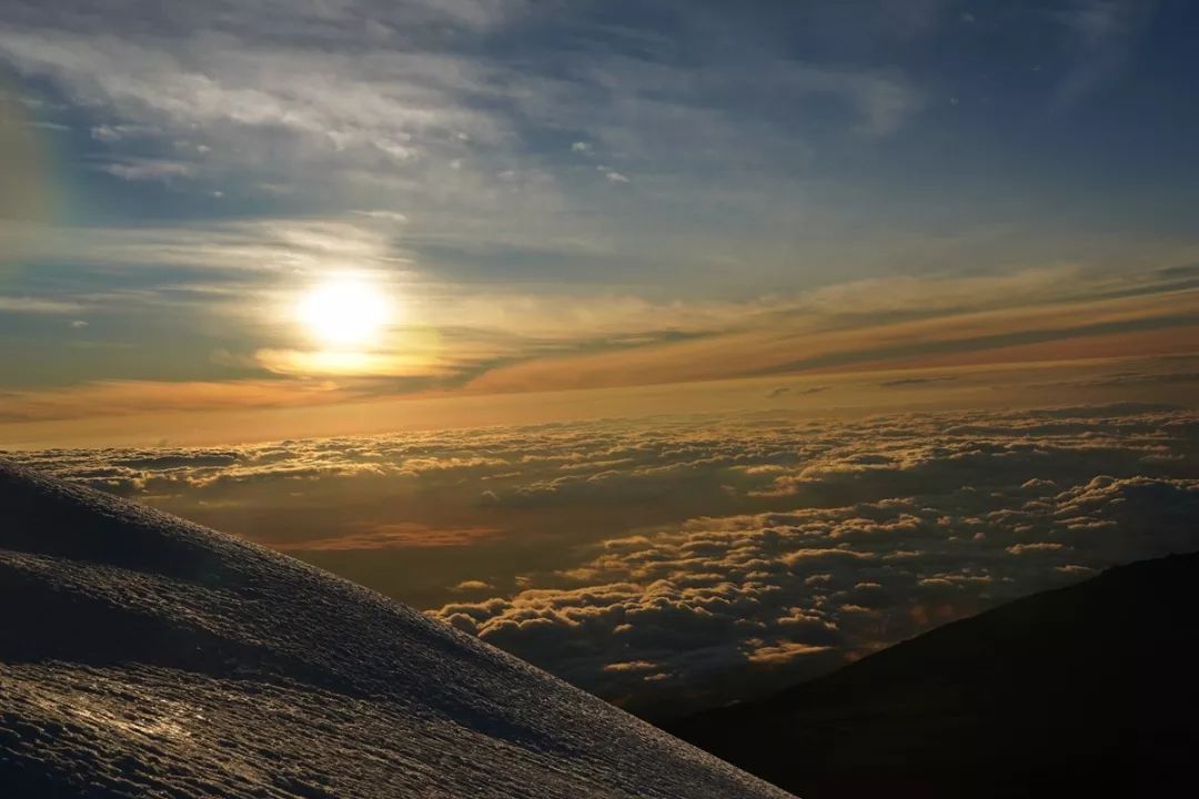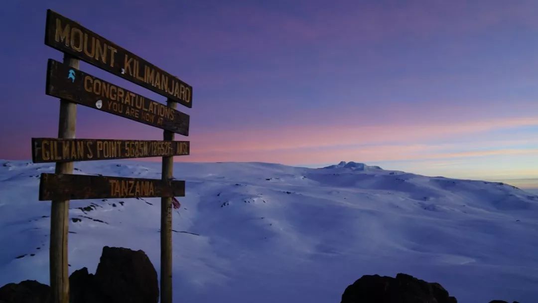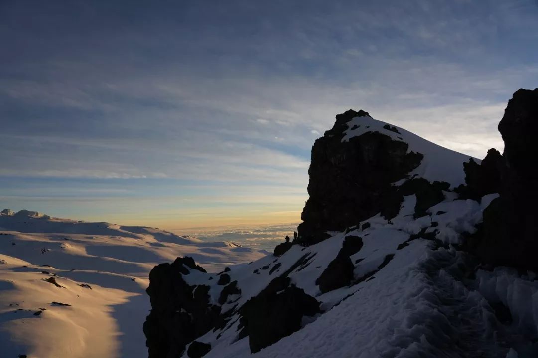 天刚发亮,我们到达山顶第一个打卡点,海拔5685米,这里是乞力马扎罗火山口的边缘。