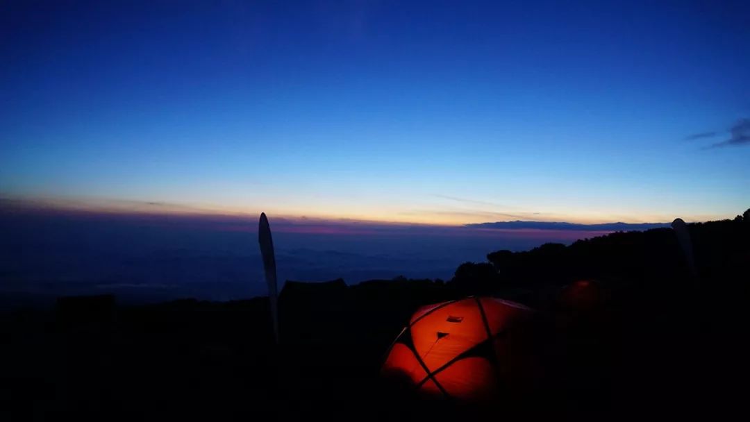 KIKELELWA营地之夜(3600米),乞力马扎罗山洁白静谧。