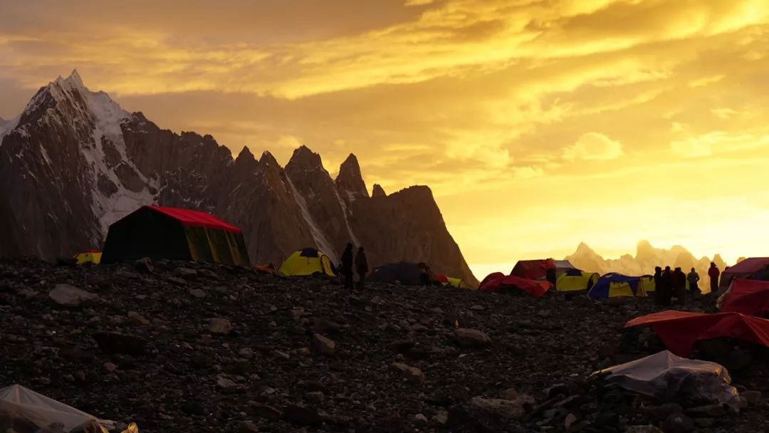 Concordia营地的傍晚,远处群峰雄伟险峻,野性荒蛮,在夕阳下显得格外壮阔!
