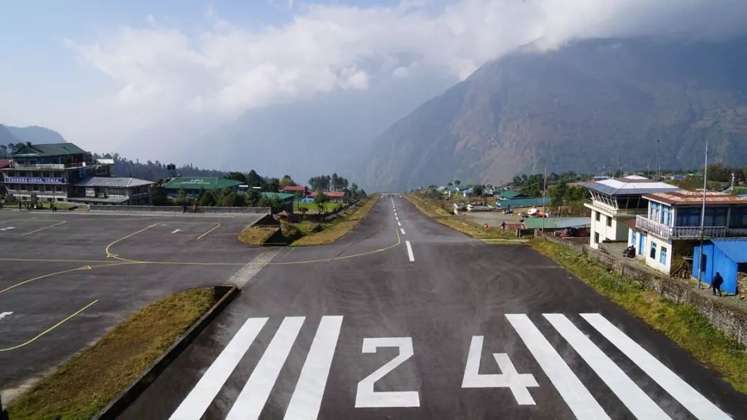 世界十大危险机场排名第一位的卢卡拉机场,海拔2845米,斜跑道宽30米,长527米,不到国际机场5500米标准长度的十分之一,一边是悬崖,另一边连着喜马拉雅山脉。