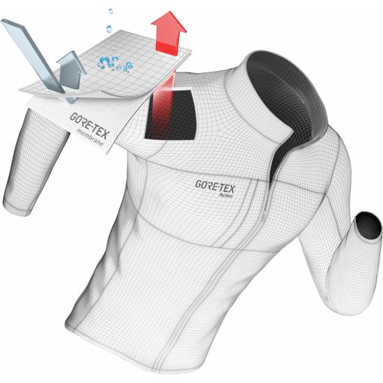 GORE-TEX®薄膜处于外层面料和内衬之间,它能让汗气通畅的排出,同时又具有完美的防风和防水性能。