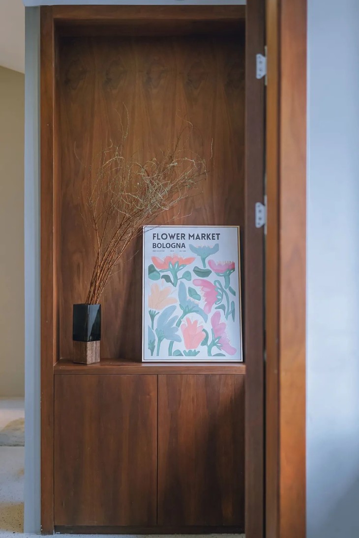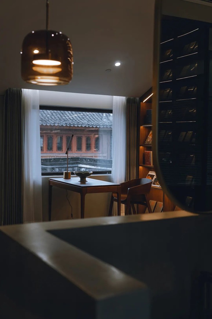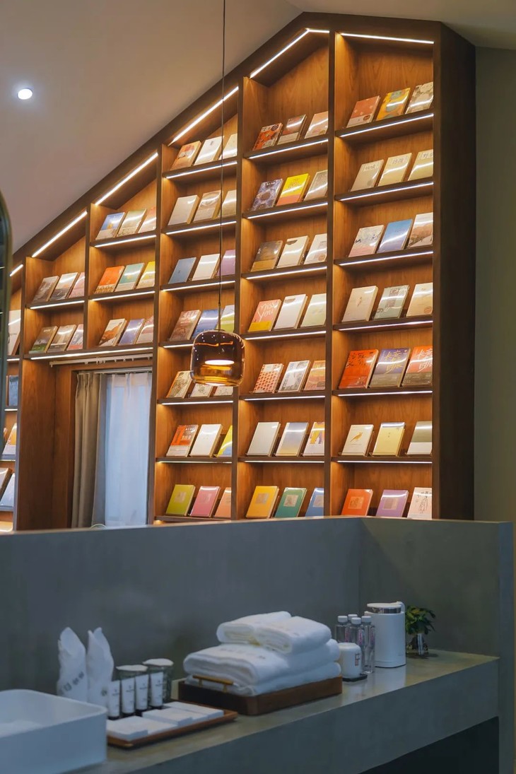 在给「诺丁山」房间做设计时,特意布置了一面大书墙,因为读书的目的,是为了要与好的东西见面:好事、好情、好人、好物。当然也包括最美好的爱情。