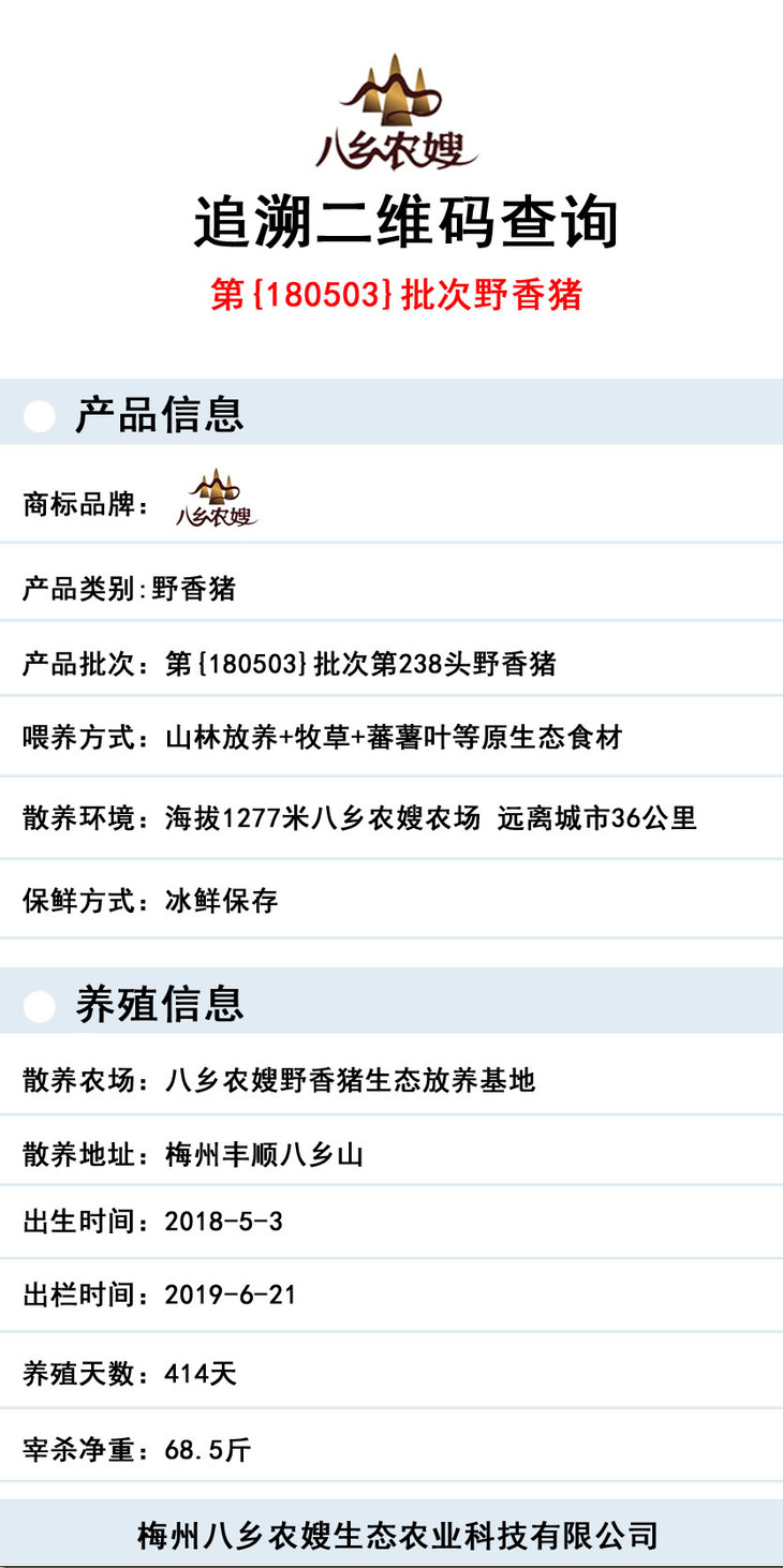 八乡农嫂曾是广州一家上市知名鞋企的首席设计师!怀着想给小孩吃上健康食物的情怀,毅然辞去首席设计师工作。2014年的春天,回到八乡自己着手建立了生态农场,2016年创立”八乡农嫂“品牌,一直坚持用仿生态放养式喂养野香猪,散养土鸡,彩色鸡蛋,并立志把这份有机健康食物分享给天下伟大的母亲,让她们的孩子能拥有一个健康的身体!