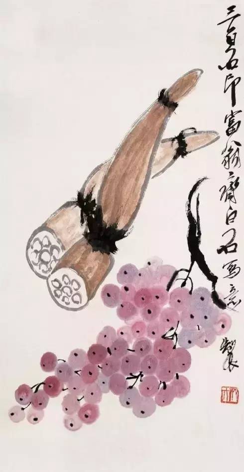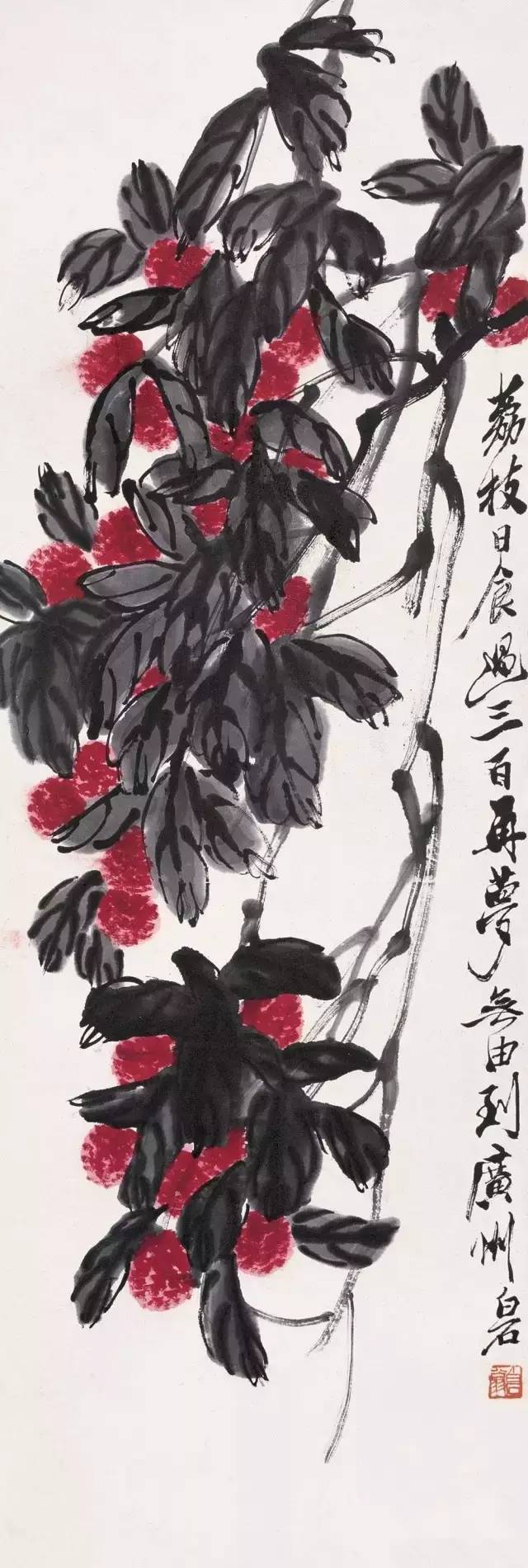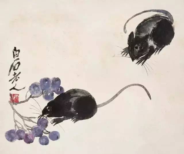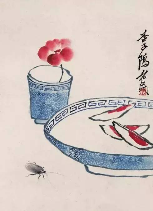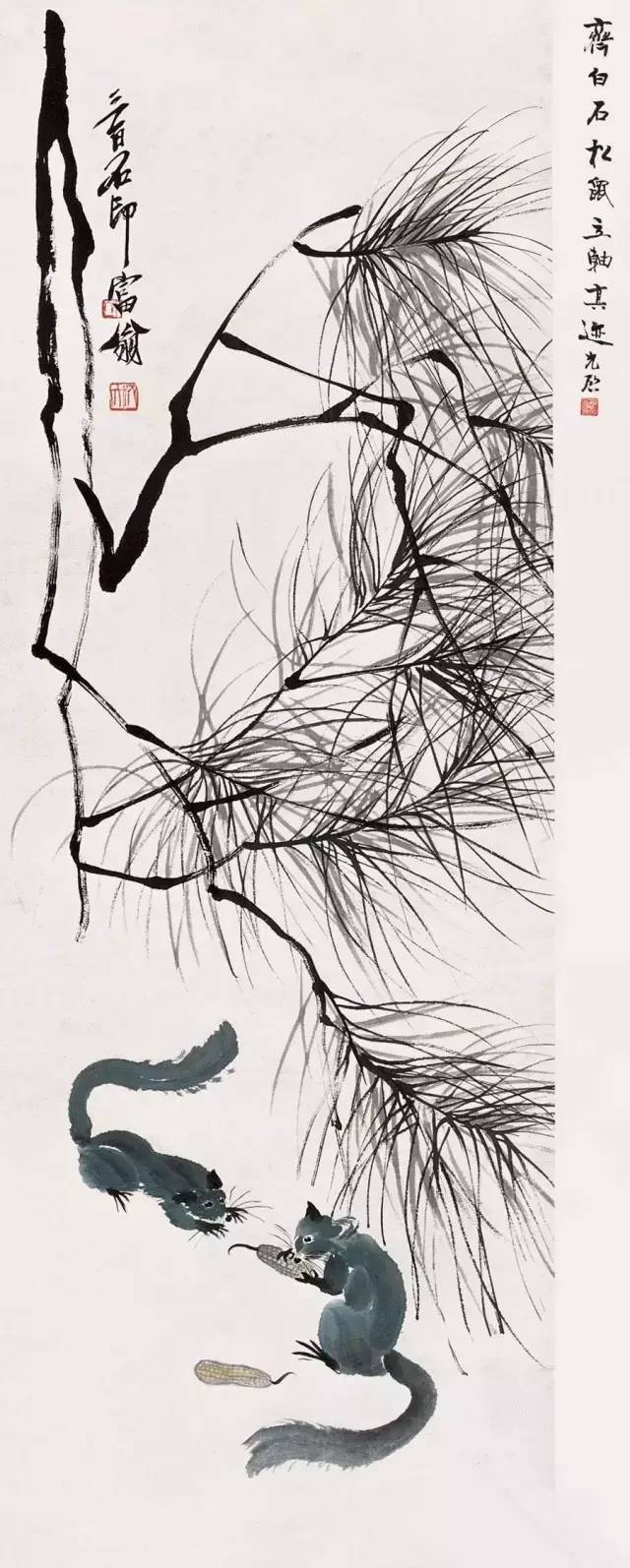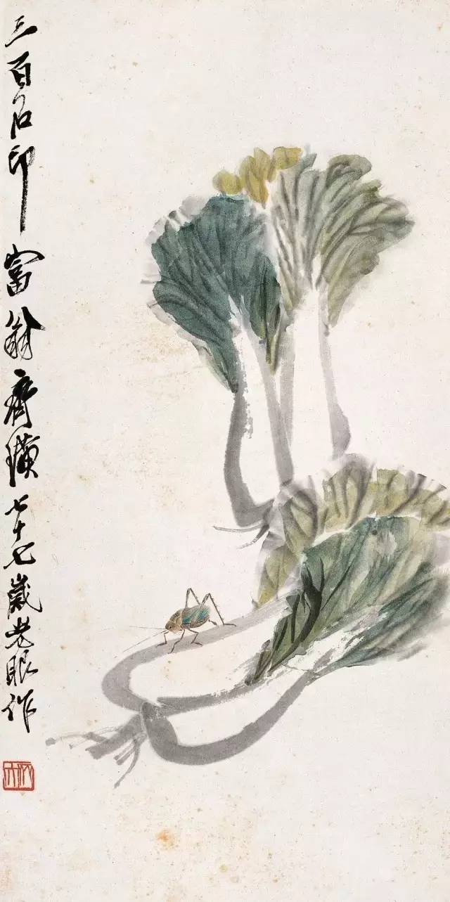 齐白石在绘画艺术上受陈师曾影响甚大,齐白石同时吸取吴昌硕之长。齐白石专长花鸟,笔酣墨饱,力健有锋。但画虫则一丝不苟,极为精细。齐白石还推崇徐渭、朱耷、石涛、金农。尤工虾蟹、蝉、蝶、鱼、鸟、水墨淋漓,洋溢着自然界生气勃勃的气息。山水构图奇异不落旧蹊,极富创造精神,篆刻独出手眼,书法卓然不群,蔚为大家。齐白石的画,反对不切实际的空想,齐白石经常注意花、鸟、虫、鱼的特点,揣摩它们的精神。齐白石曾说:为万虫写照,为百鸟张神,要自己画出自己的面目。齐白石的题句非常诙谐巧妙,齐白石画的两只小鸡争夺一条小虫,题曰;“齐白石日相呼”。一幅《棉花图》题曰:“花开天下暖,花落天下寒”。