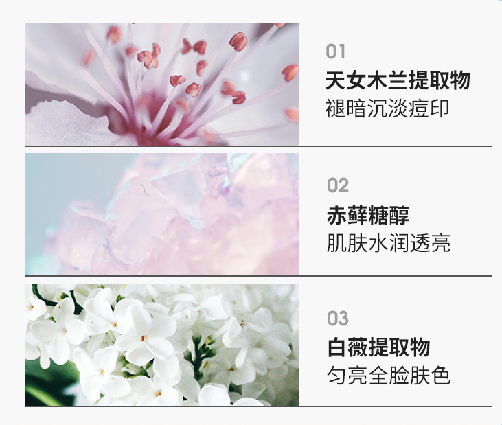 帮助进一步润泽透亮肌肤,淡化暗沉的痘印