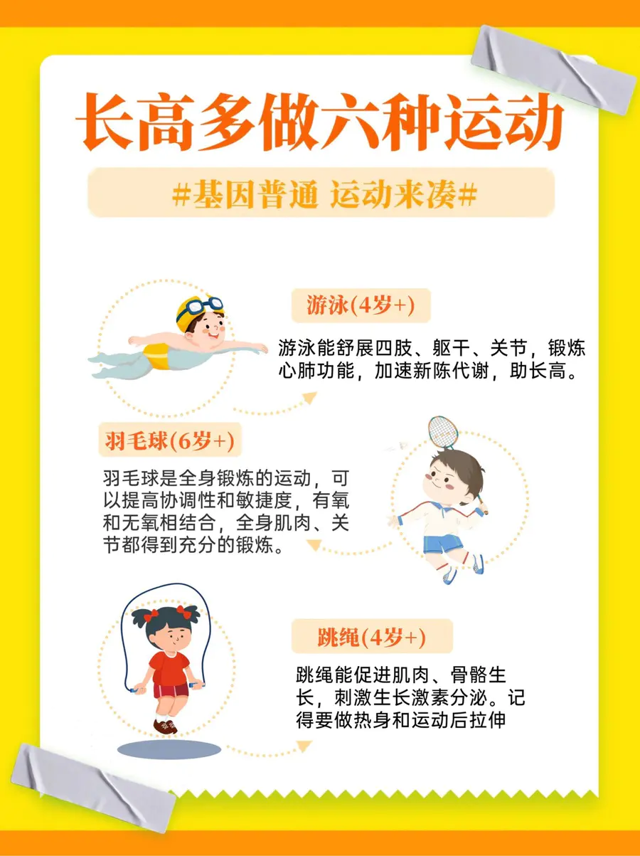 你们的宝贝最近吃好喝好❓暑假都有没有长高长肉❓在秋季这个长高的黄金期,我们一定要多花心思啦,今天整理一份适合各年龄段,长高运动和长高食物🥗快快收藏起来吧~